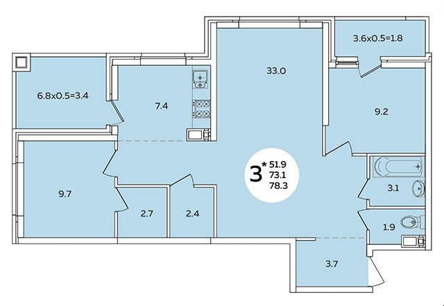 Общая площадь 78.3 м2
