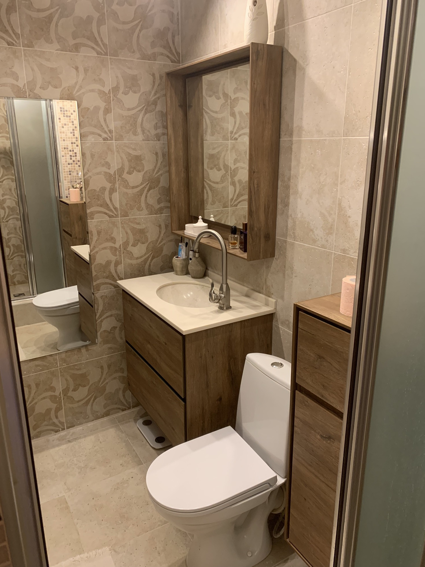 С/у - керамогранит на полу и стенах.
