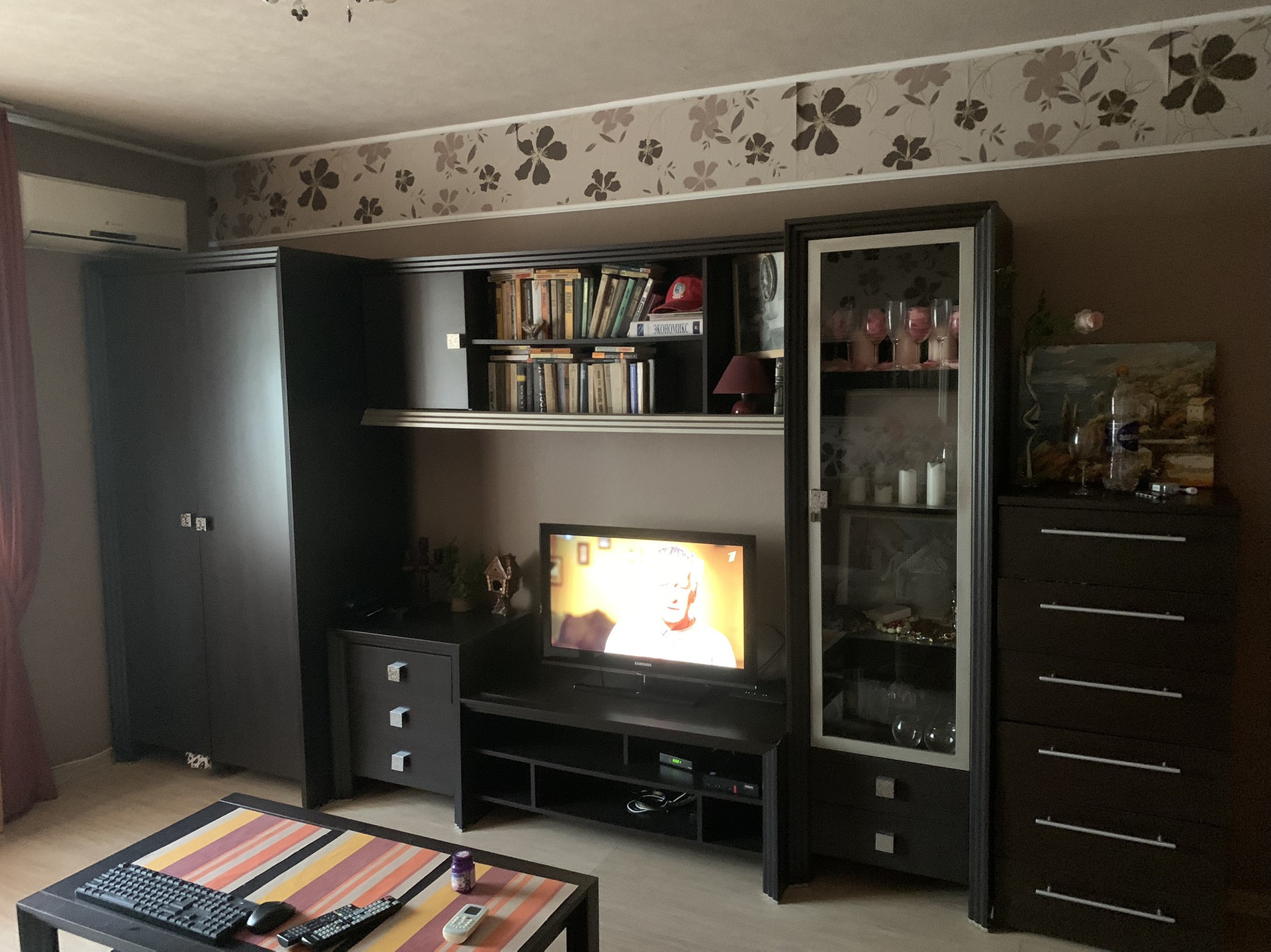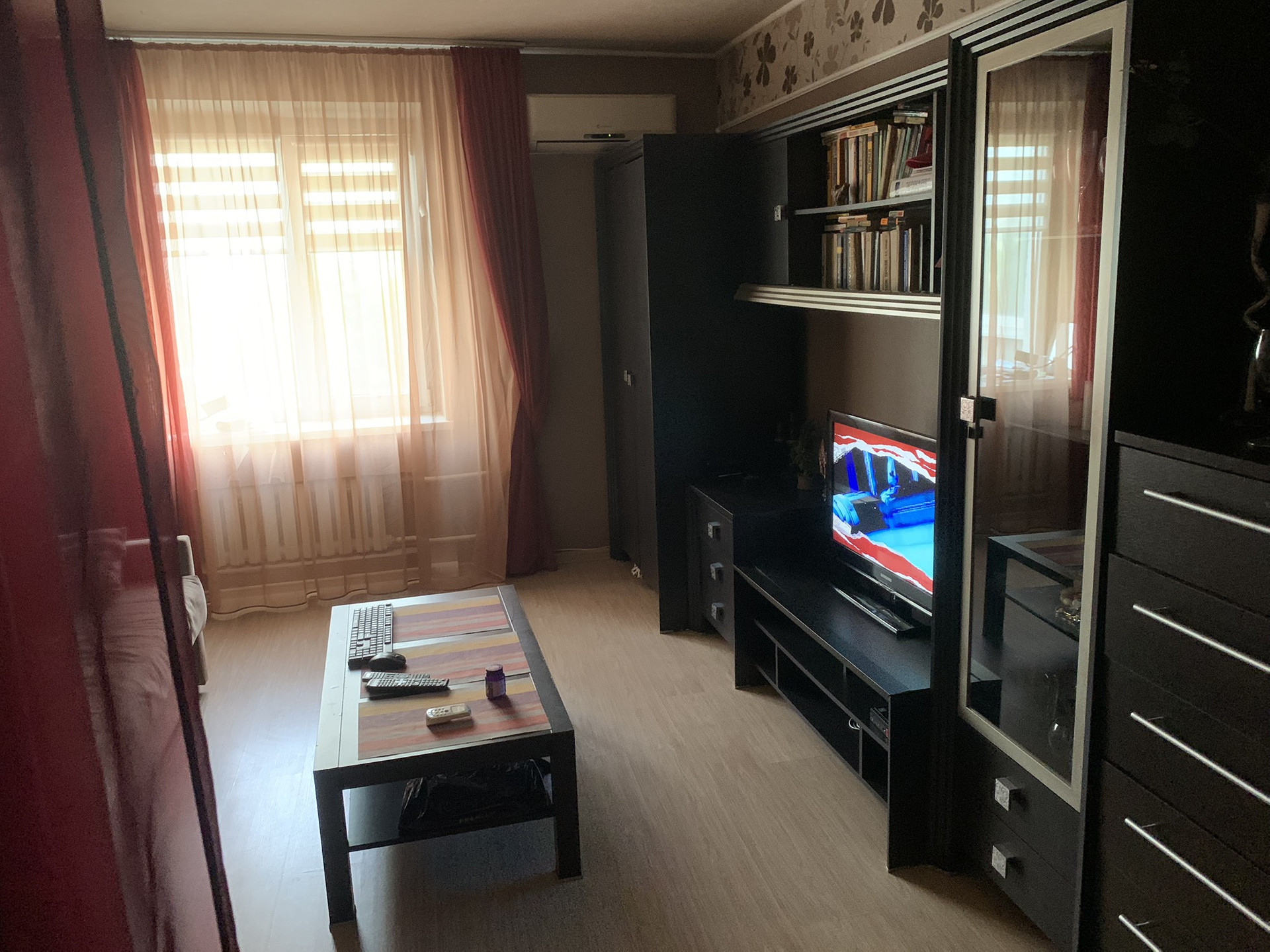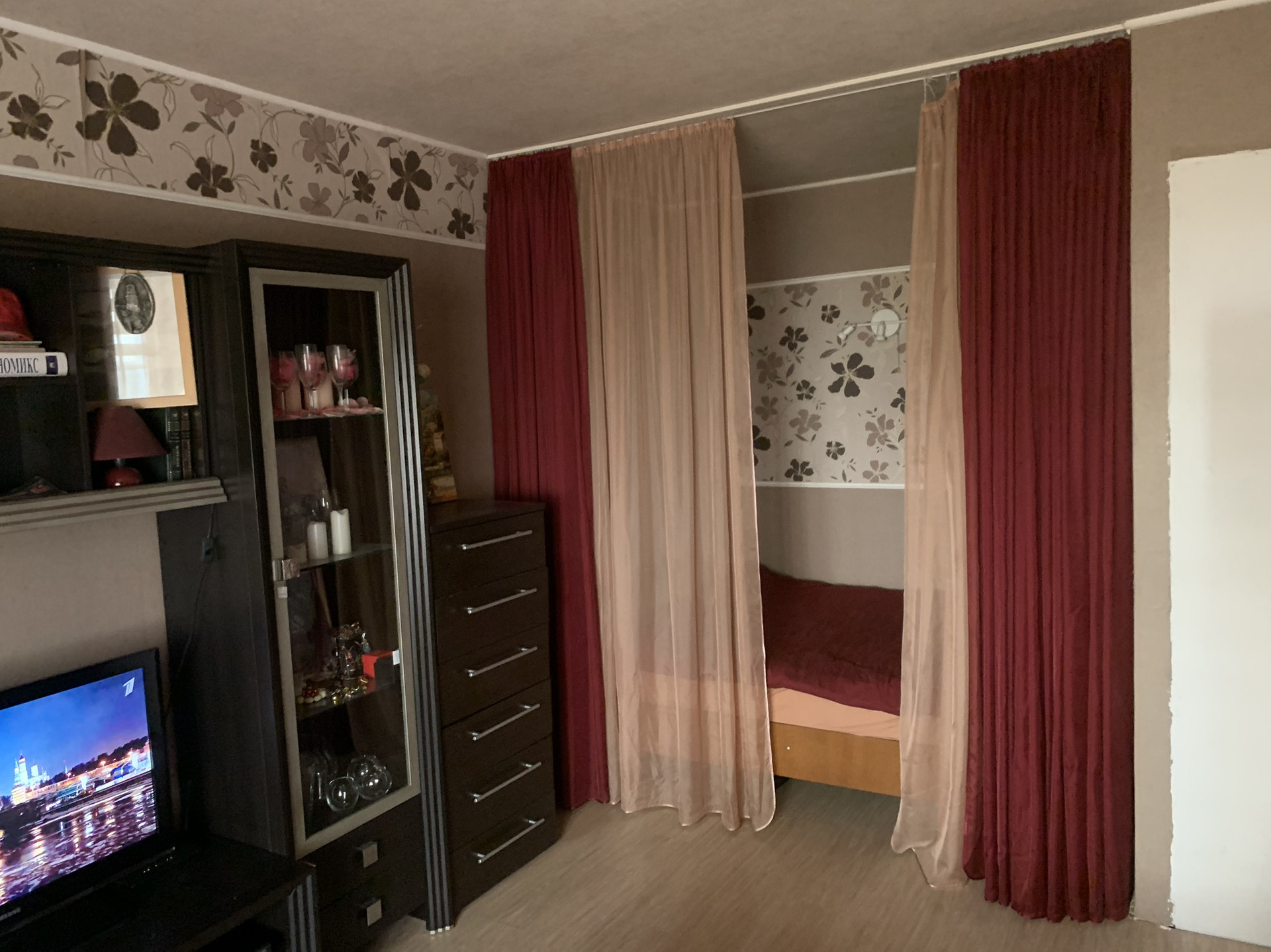 Планировка хорошая. Кровать в нише, зашторена. Комната используется как гостиная.