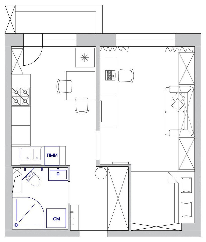 Общая площадь 34.5 м2