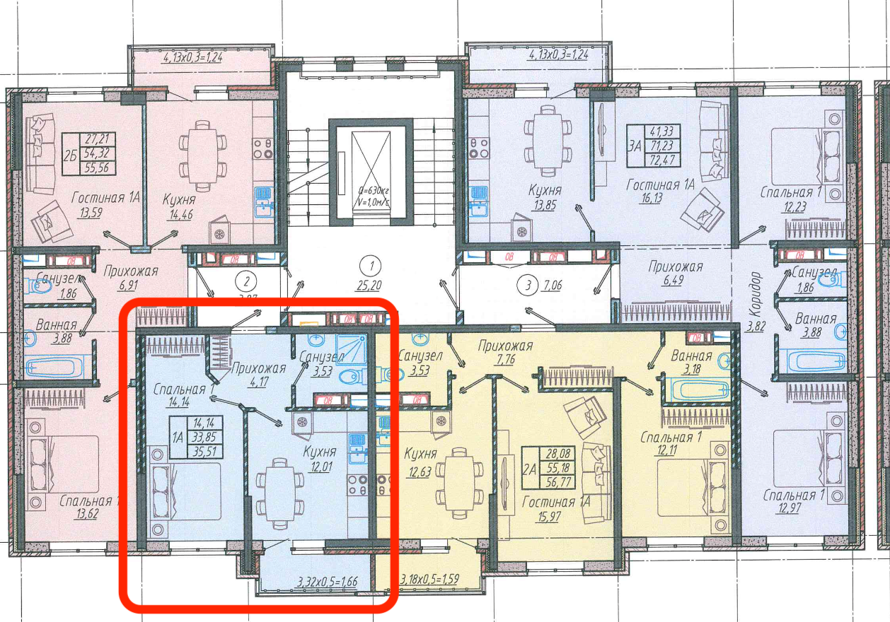 Общая площадь 35.51 м2