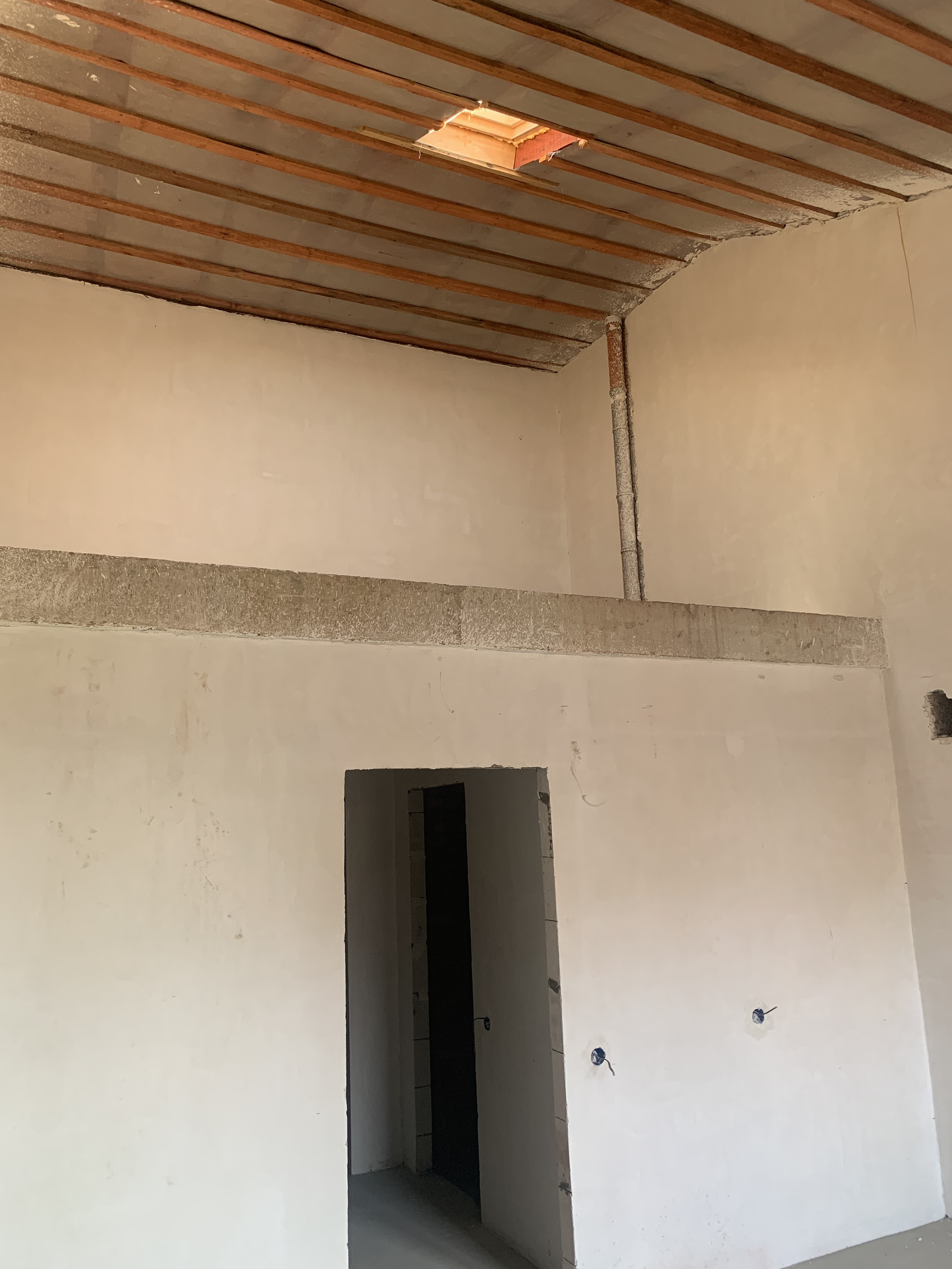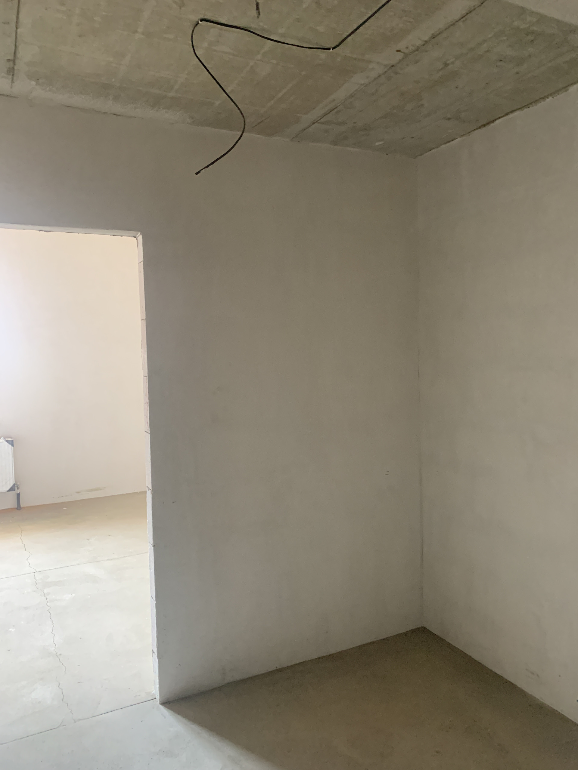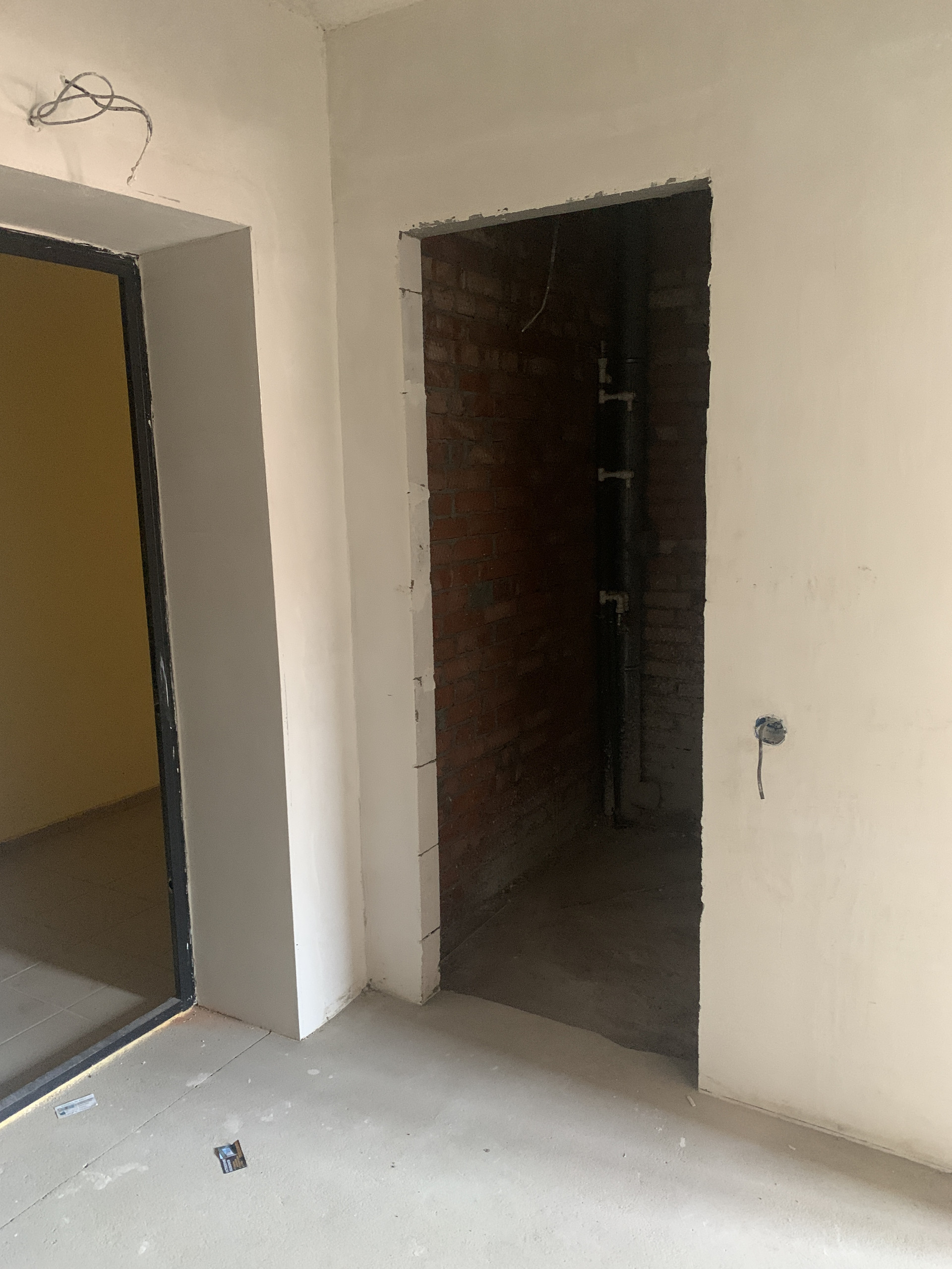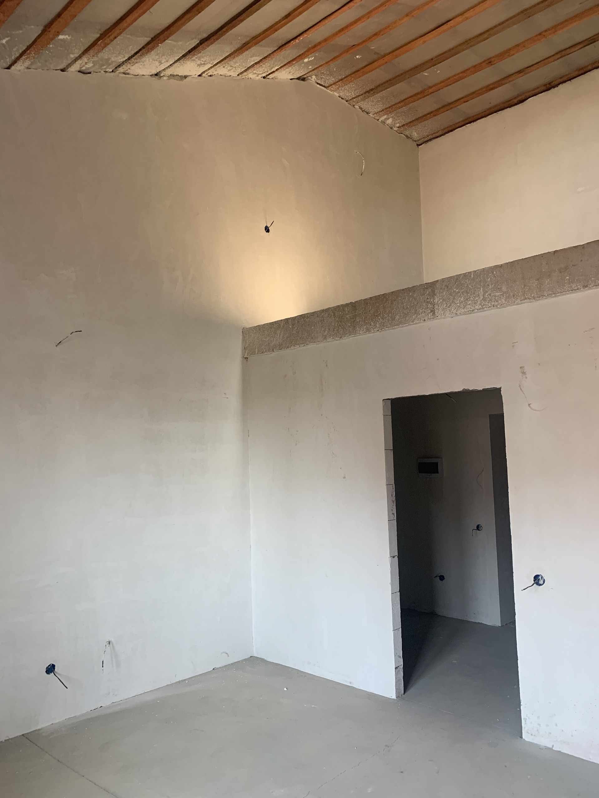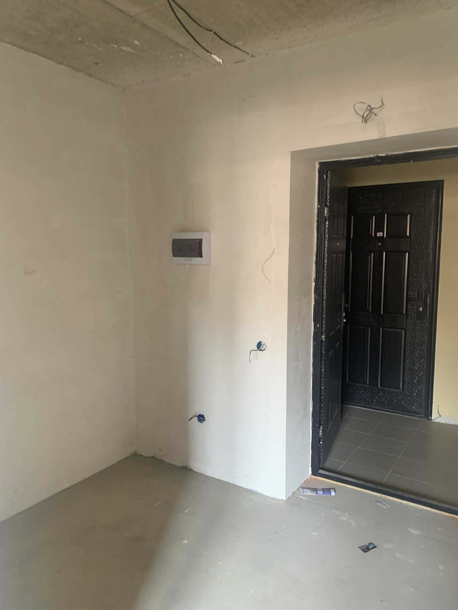 Есть проводка и выводы под розетки и выключатели , также оштукатурены стены , выровнен пол на первом этаже.