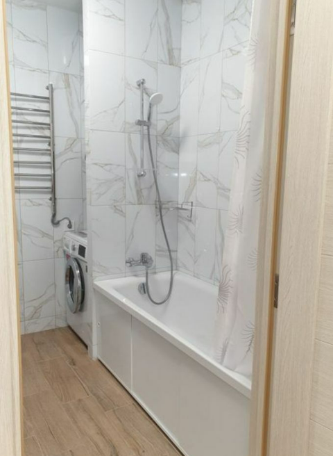 В квартире выполнен свежий ремонт в современном стиле, создающий уютную и комфортную атмосферу. Большие окна пропускают много света, что делает помещение светлым и просторным. Кухня оборудована всей необходимой техникой и мебелью, чтобы вы могли готовить свои любимые блюда и приглашать гостей.