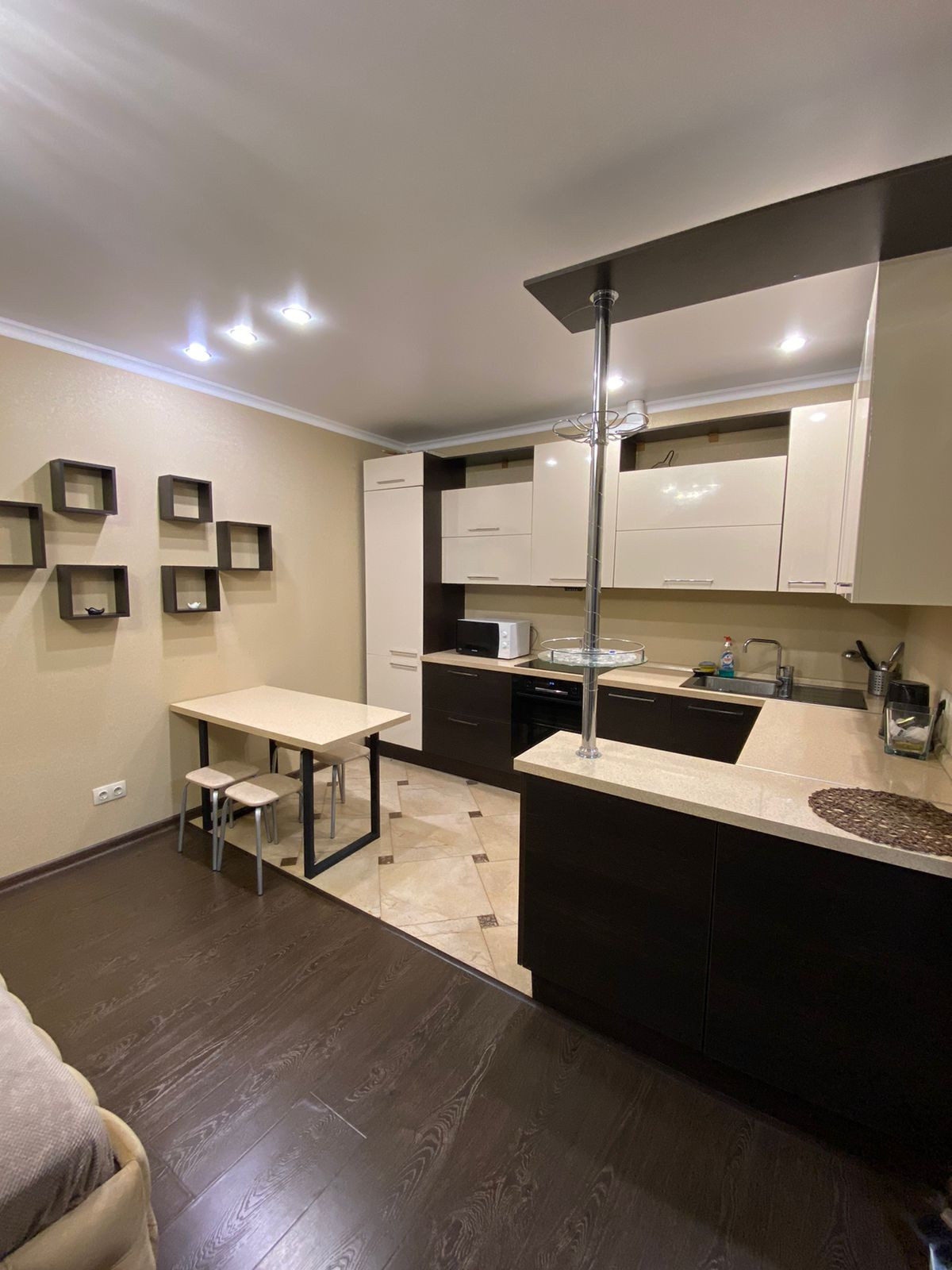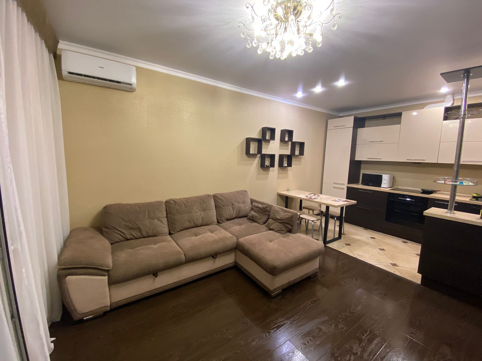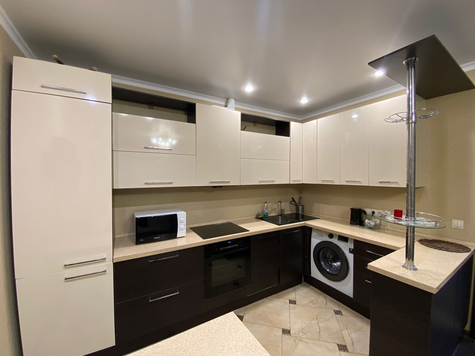 Вместительная кухня со встроенной техникой( из техники останется холодильник, варочная панель, вытяжка)