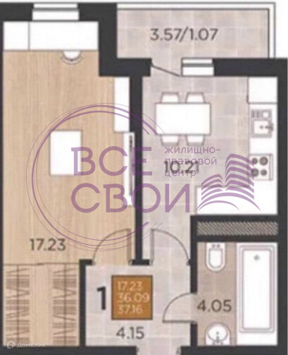 Общая площадь 37.4 м2