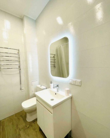 В квартире выполнен качественный ремонт, использованы только современные материалы. На полу лежит паркет, стены окрашены в светлые тона, а потолки подвесные с интегрированными светильниками. Большие окна приятно освещают жилую зону и создают ощущение простора. Квартира продается полностью меблированной и оборудованной всей необходимой техникой.