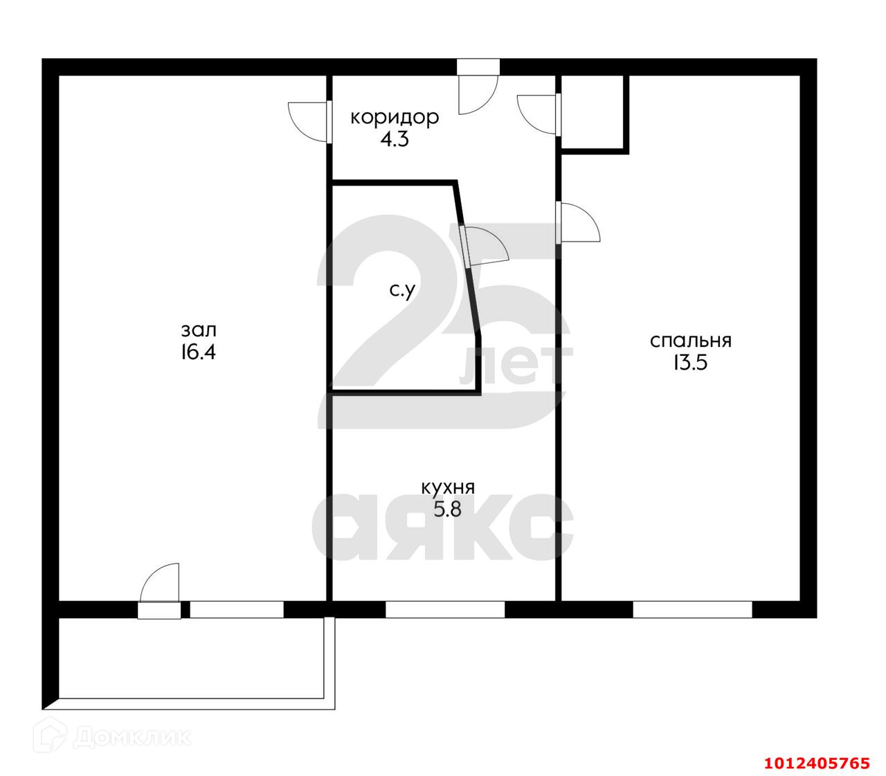 Жилая площадь 29.9 м2