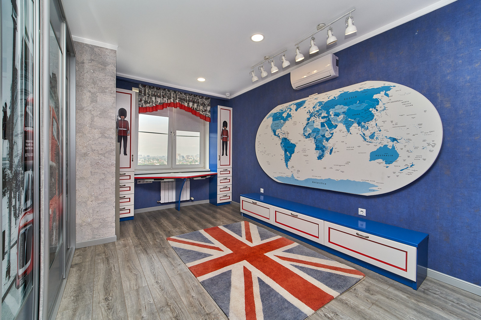 Большая лоджия с рабочим местом из массива небольшой комнатой и тёплым полом, у нас там чудесно расположилась малышка, в тоже время от мамы в 2-х шагах. Трое детей расположились в квартире очень комфортно. Спальня с гардеробной, она идеально выполнила роль шумоизоляции от соседей. В спальне 3 вида освещения. Выход на лоджию. Детская- двухъярусная кровать из массива дуба, выдерживает большой вес и сама весит более 200 кг, очень надежна и вместительна, так же выполняет роль системы хранения. Фасады детской выкрашенный дуб. Большой шкаф купе. В рабочей зоне много естественного света. Карта мира детальная, можно делать свои отметки. 3 вида освещения. Электрика в квартире вся продумана и удобно расположена, все на автоматах (18 шт) и УЗО. В сезон отопления никогда не возникает проблем с теплом, всегда квартира теплая.