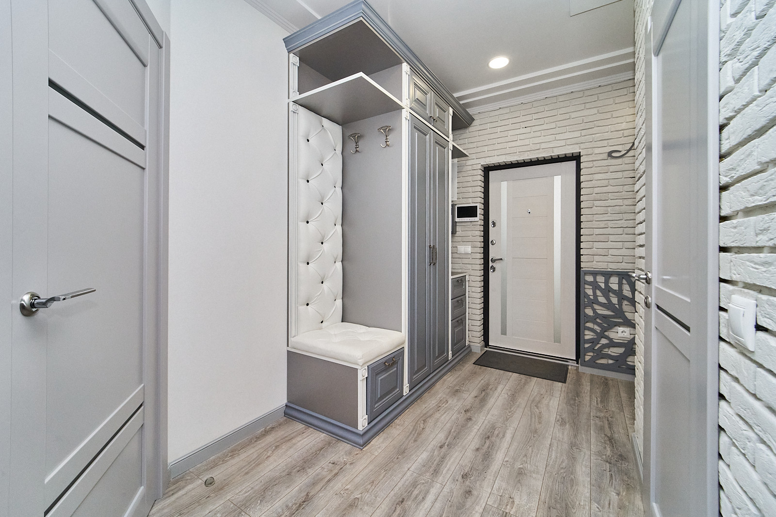 Коридор- 3 вида света, красивый шкаф, фасад массив крашеный, фотозона. Кухня- тёплый пол, мебель МДФ крашеный индивидуального исполнения, эксклюзивный фасад, фурнитура Blum во всей мебели по квартире, полная выкатная система ящиков глубиной 70 см. Варочная поверхность (Siemens) и вытяжка на 90 см(Teka). Это самая удобная кухня!