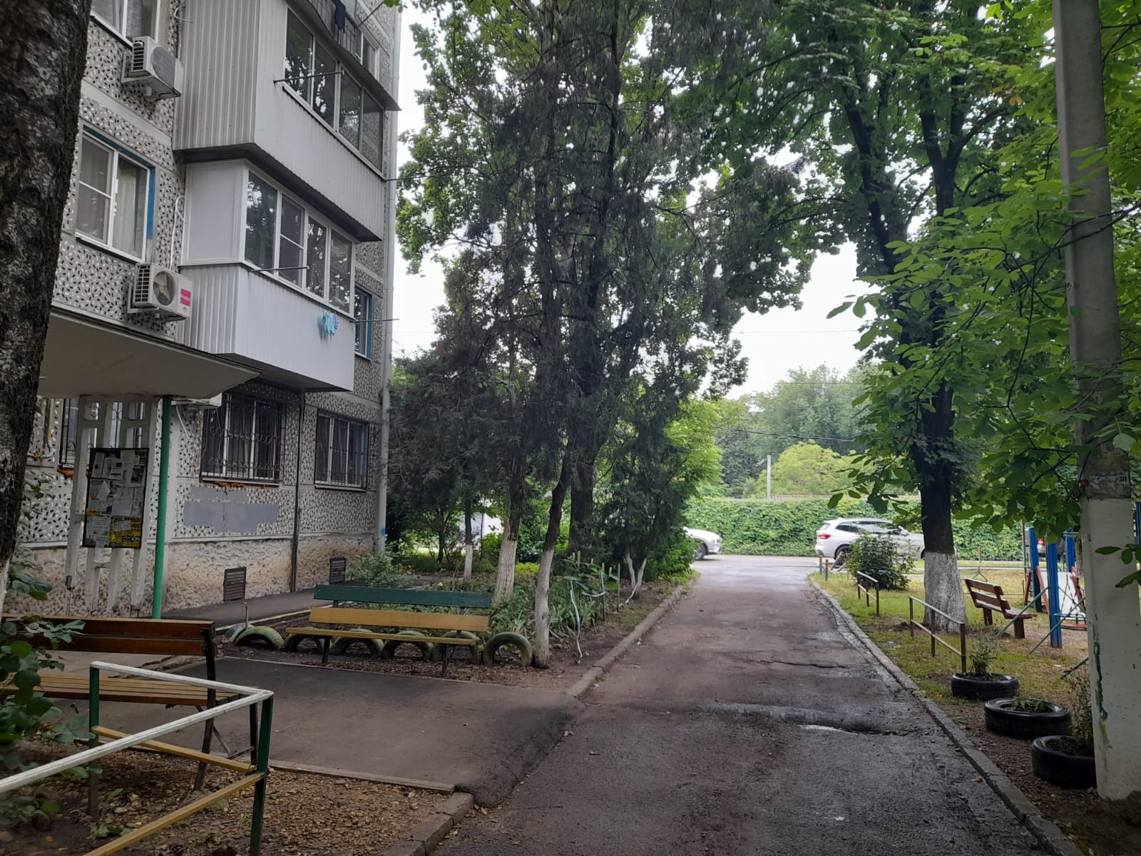 Вид из окна двор, улица