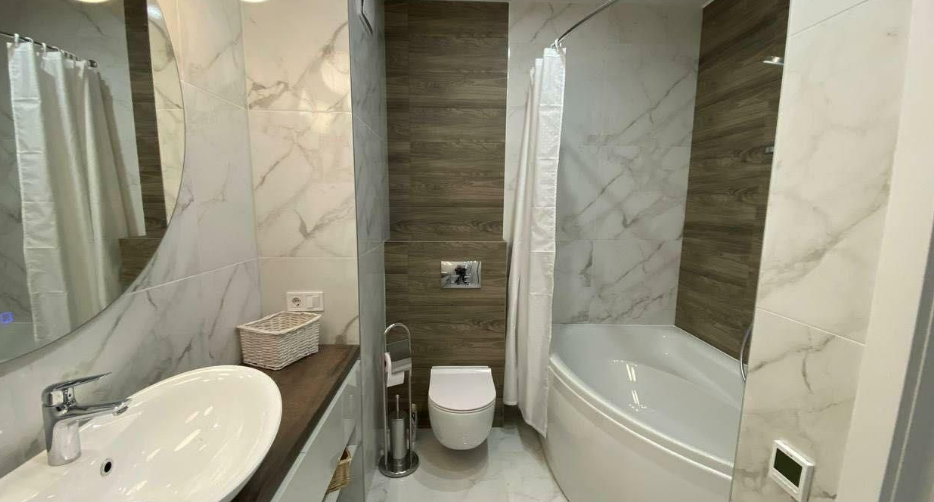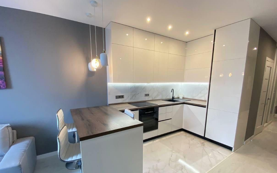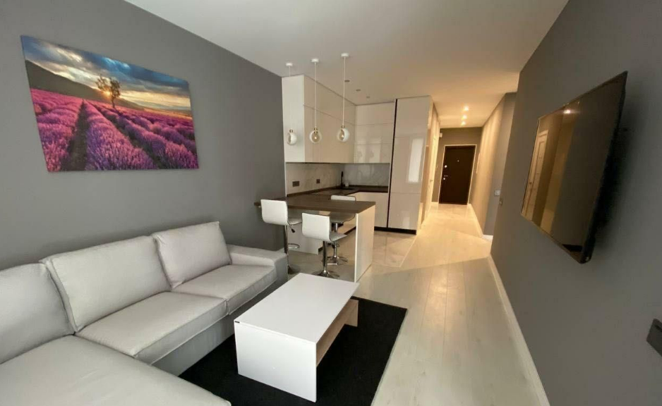 Продается однокомнатная квартира на 14 этаже в новом жилом комплексе. Квартира имеет современный дизайн, выполненный в светлых тонах, что создает комфортную и уютную атмосферу. В квартире есть все необходимое для комфортного проживания: кухонный гарнитур с бытовой техникой, удобная мебель, большая двуспальная кровать, ванная комната с современными сантехническими приборами и стиральной машиной. Расположенная на 14 этаже, квартира обладает прекрасной изоляцией от шума и пыли, что позволит Вам наслаждаться спокойствием и комфортом в любое время суток. Жилой комплекс находится в экологически чистом районе города, рядом с парком и озером, что делает его идеальным выбором для тех, кто ценит здоровый образ жизни и красивую природу. Эта прекрасная квартира станет идеальным выбором для тех, кто ищет комфортный и современный дом в городе.