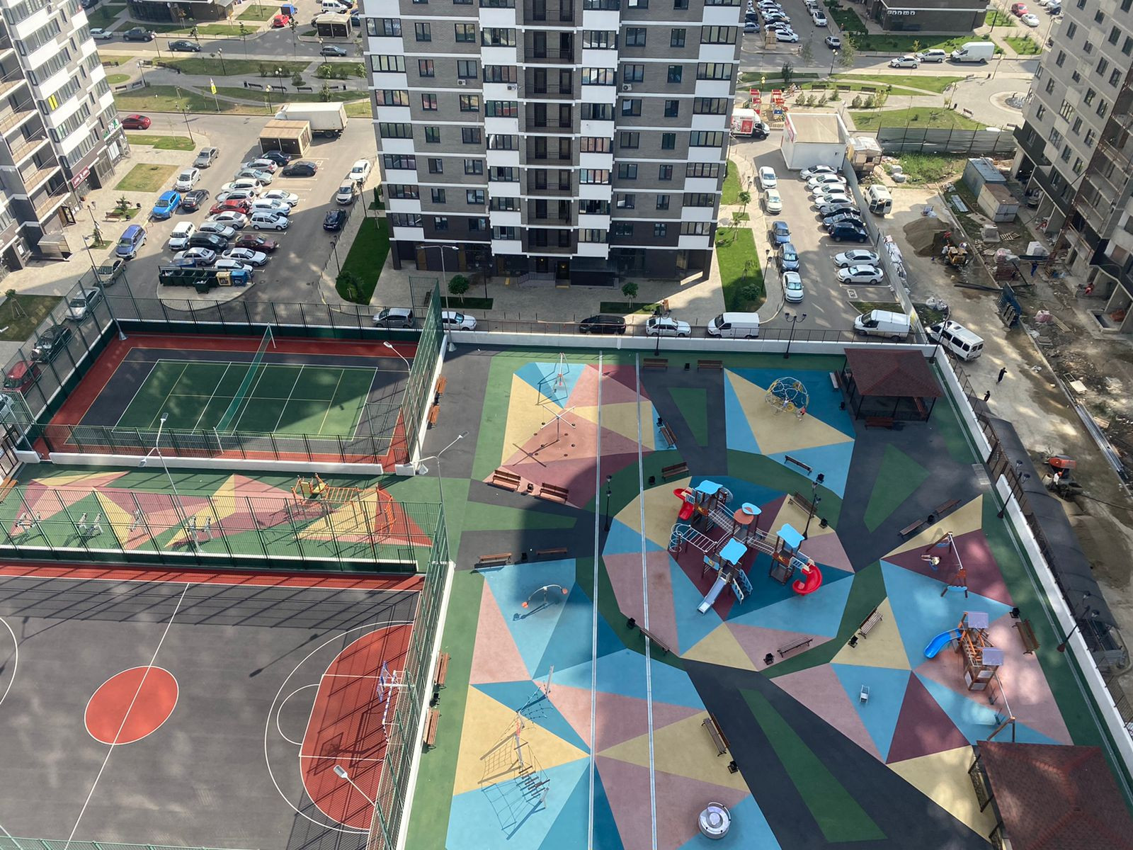 • Во дворе дома строится школа на 1500 мест и 2 детских сада.