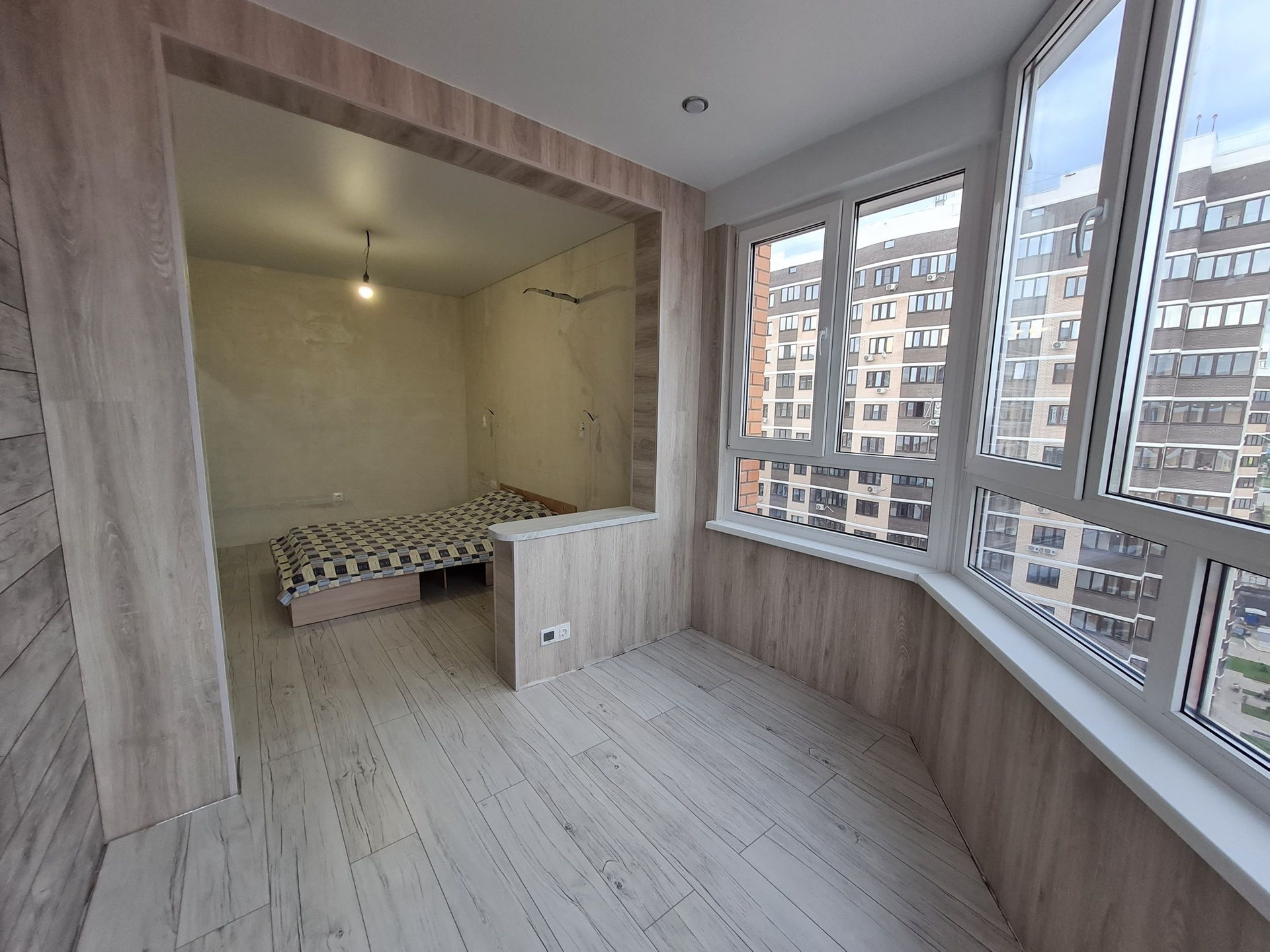 В квартире частично сделан ремонт: +утеплен балкон (теплый пол, на стенах и полу ламинат, остекление мультиплекс 70 мм),