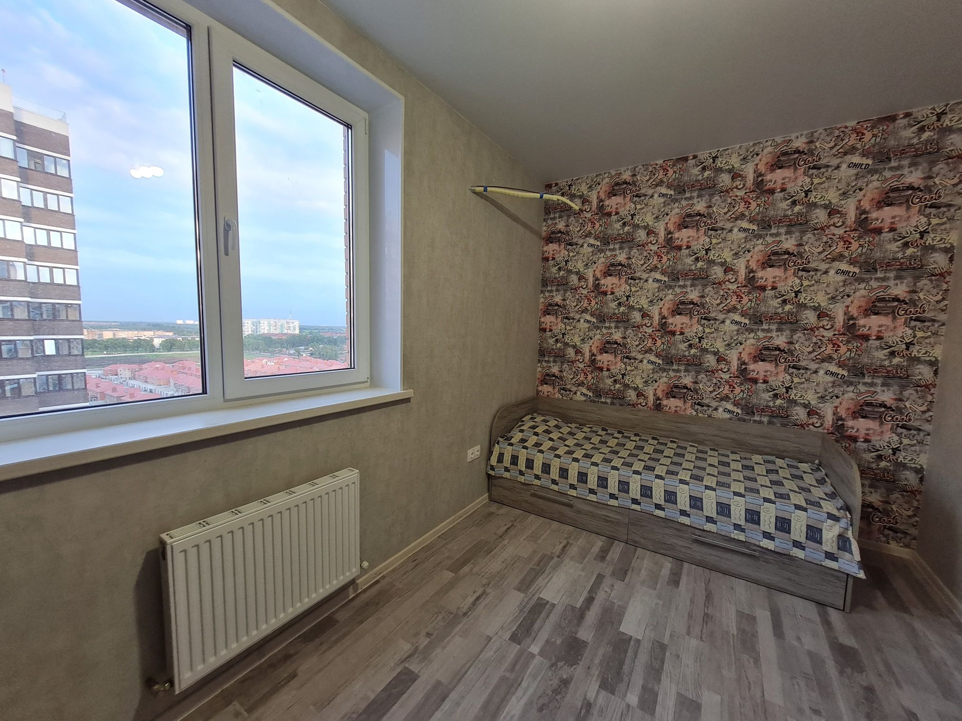+в детской уложен ламинат и поклеены обои;
