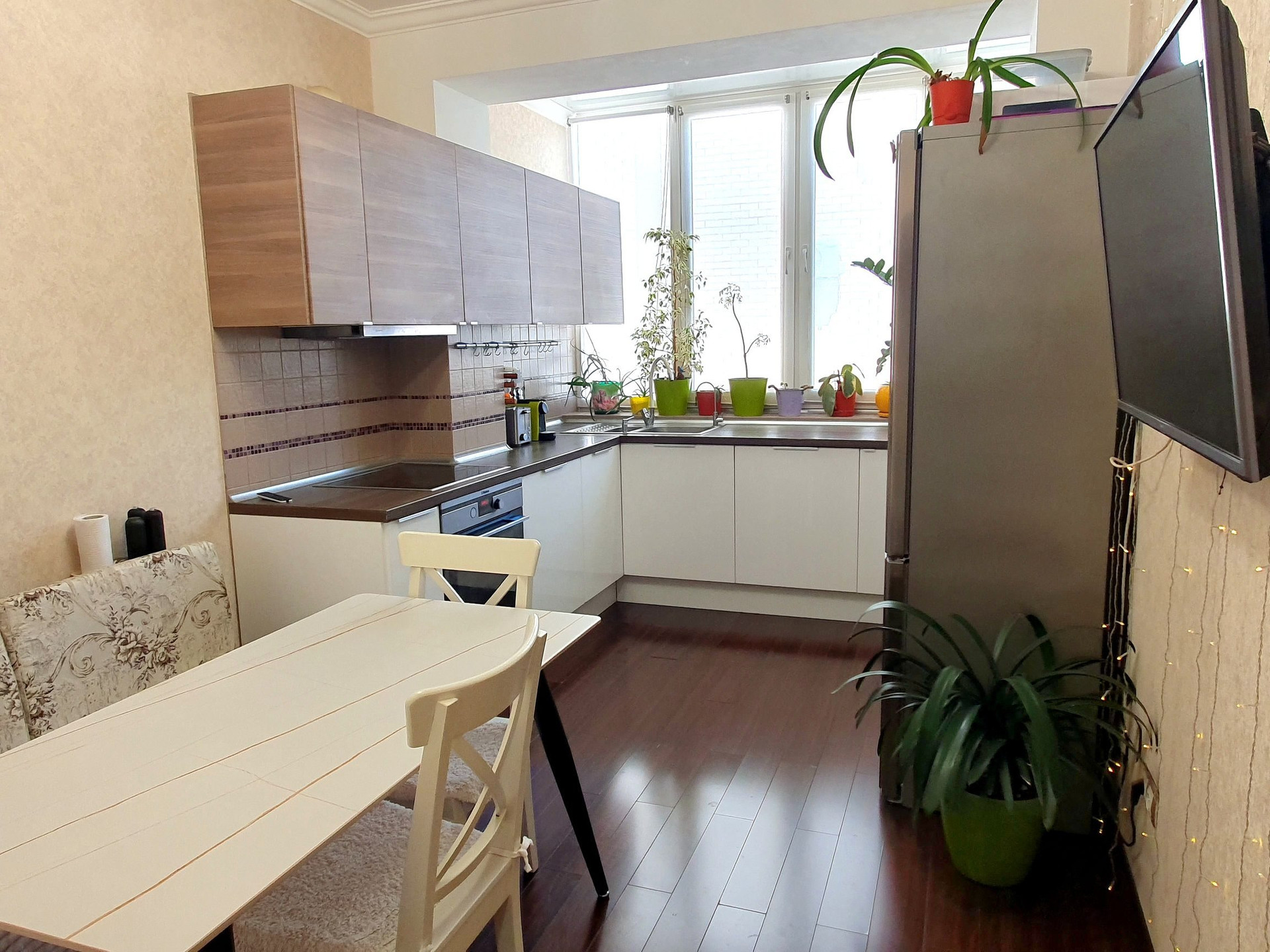 В квартире остаётся кухня с плитой и посудомойкой, шкафы-купе, сплиты, вообще мебель по договорённости, смотря с чем заедете))