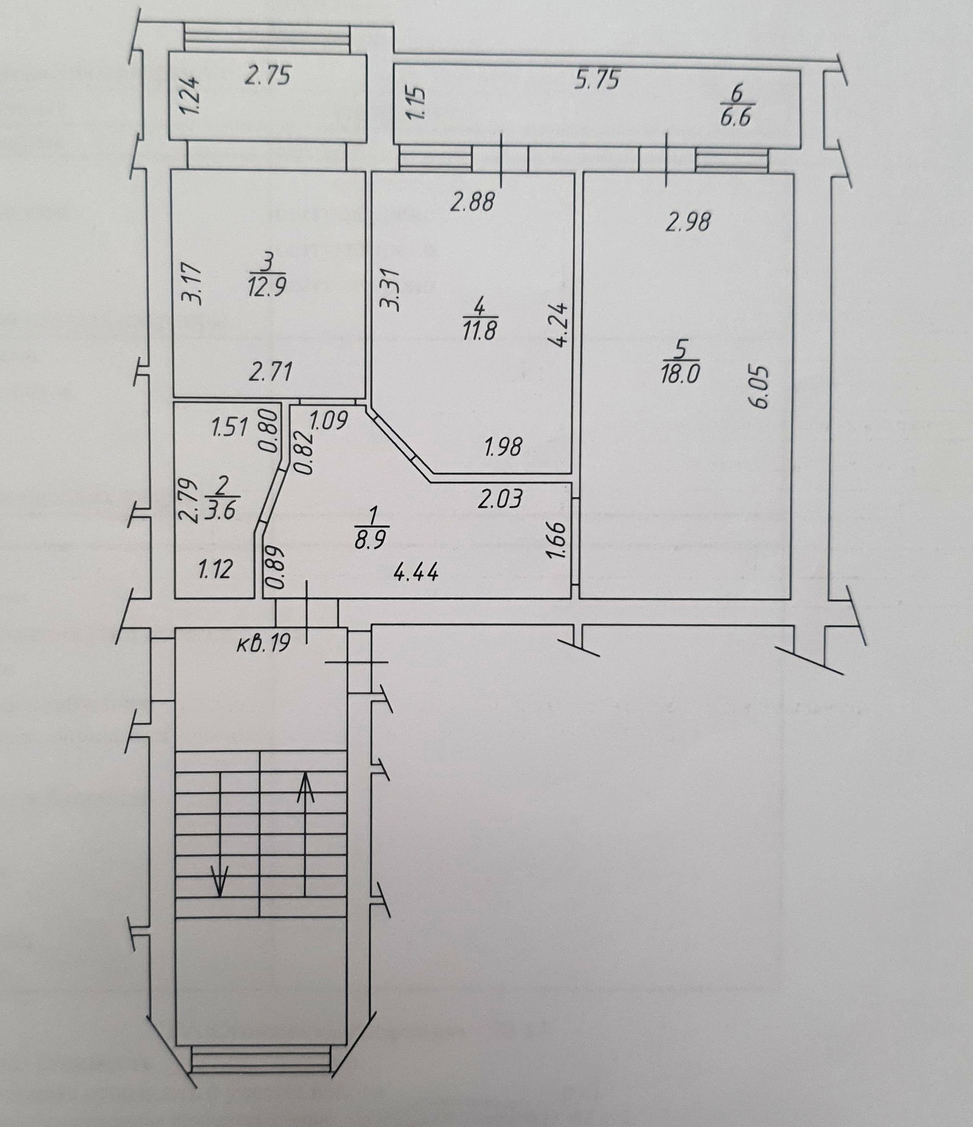 Общая площадь 61.8 м2