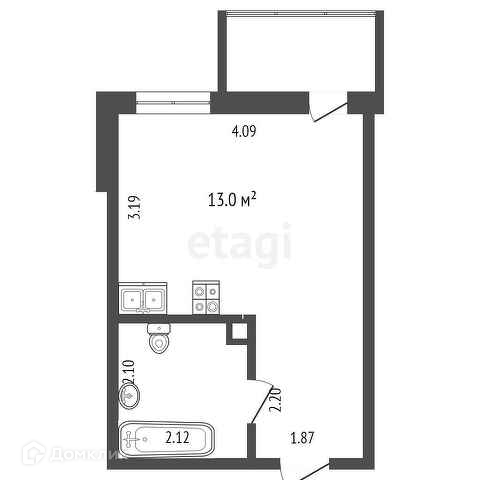 Общая площадь 21.5 м2