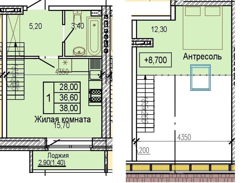Общая площадь 41 м2