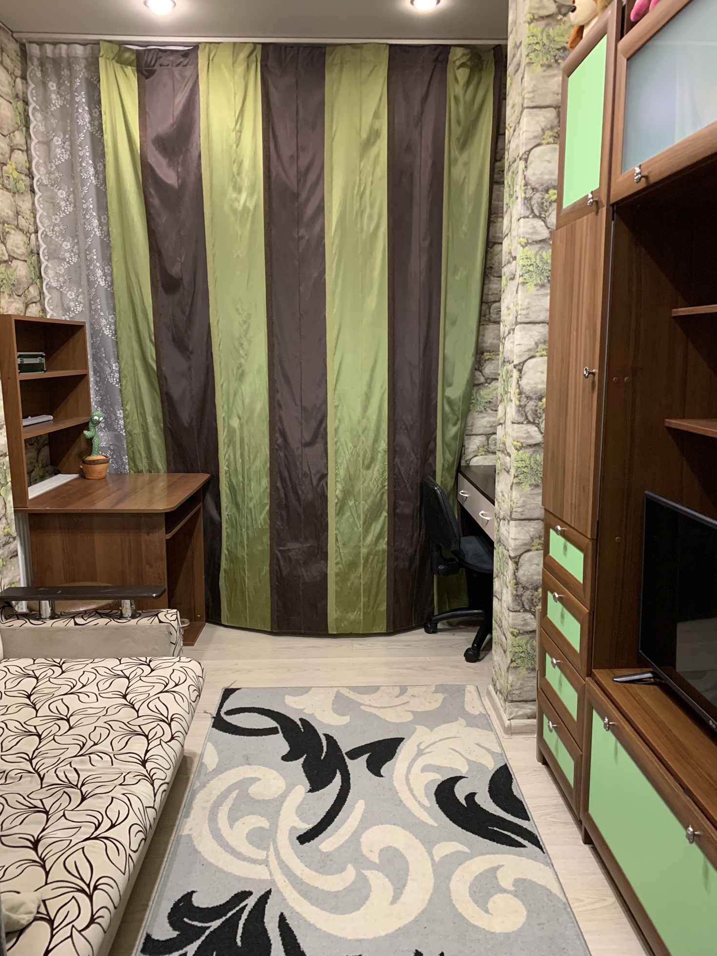 Из части кухни сделали дополнительную комнату. (межкомнатная перегородка легко демонтируется).