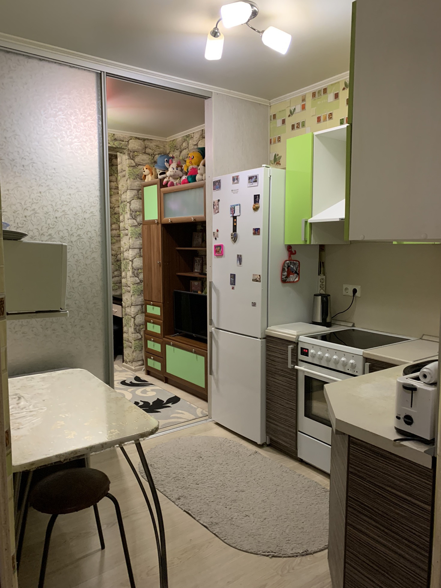 Остается кухня(качественная фурнитура с доводчиками делали на заказ) ,шкаф-купе очень вместительный .