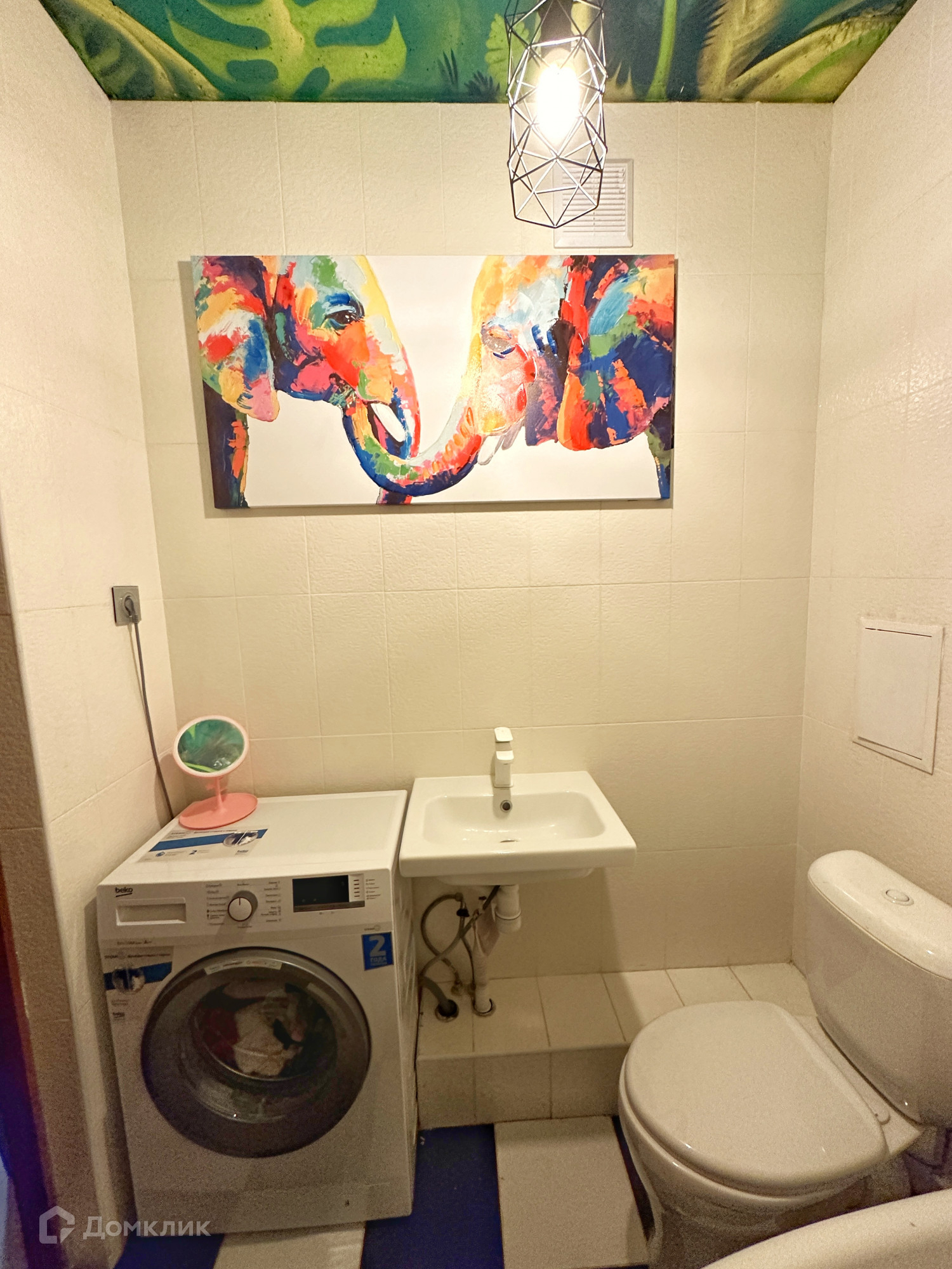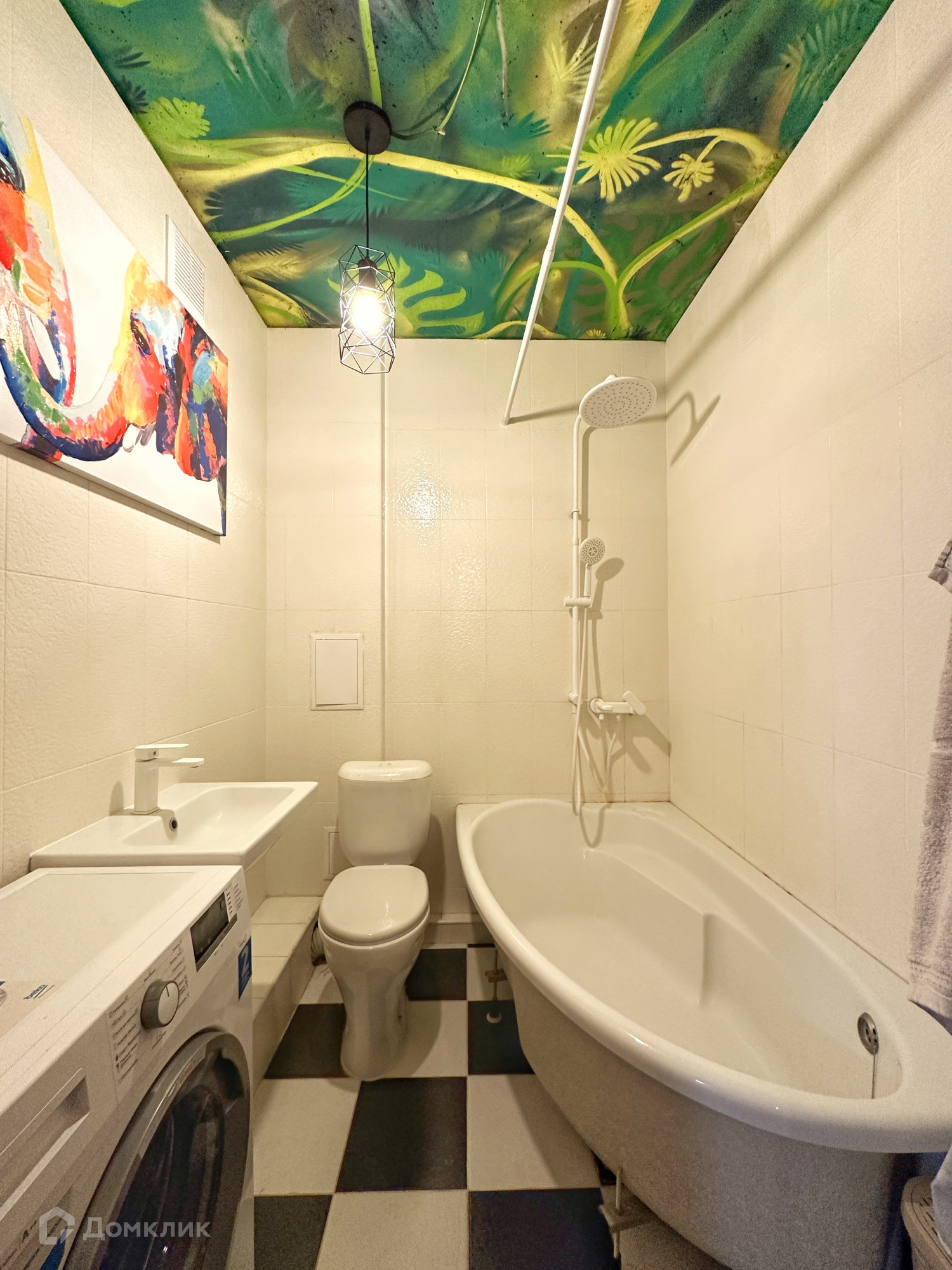 В ванной комнате установлены не только унитаз и раковина, но и поместились большая ванная со стиральной машиной, что большая редкость для студий.