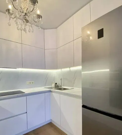 Квартира имеет современный дизайн и продуманную планировку, что позволяет максимально удобно использовать всю ее площадь. В ней предусмотрены все необходимые элементы для комфортной жизни: оборудованная кухня с бытовой техникой, отдельная спальня и ванная комната.