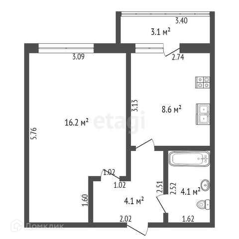 Общая площадь 33 м2