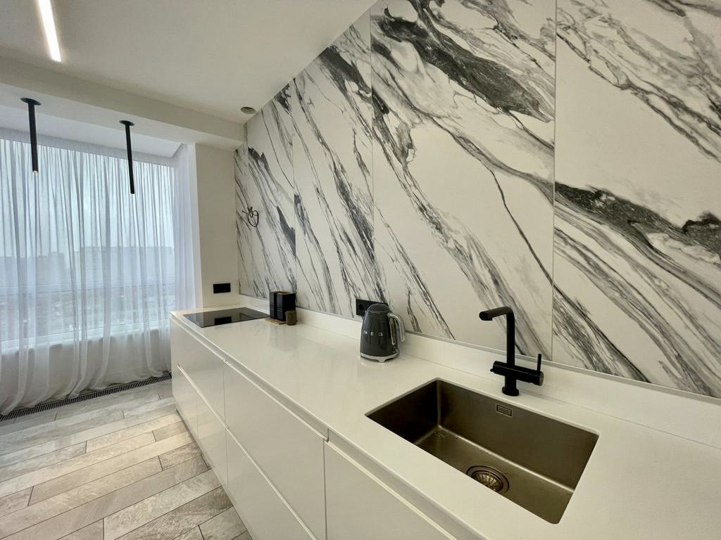 В квартире качественный ремонт с использованием дорогих материалов: сделано остекление немецким профилем "KBE", на полу керамогранит ( Испания) . Все освещение led - свет в квартире фирмы Centrsvet на полу натуральный  паркет. В санузле сантехника премиального уровня  "Cisal" и "Bossini", ванная "Villeroy & Boch" ,  перегородка  "Radaway" ,  двери "Invisible" , Итальянская фурнитура "Morelli". Выключатели и розетки Schneider Unica. установлены теплые полы .