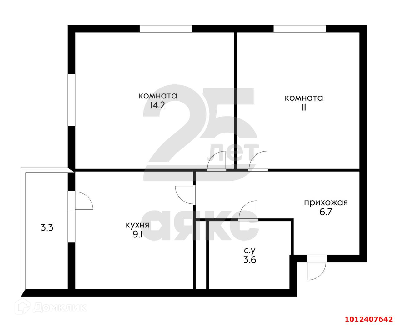 Жилая площадь 25.2 м2