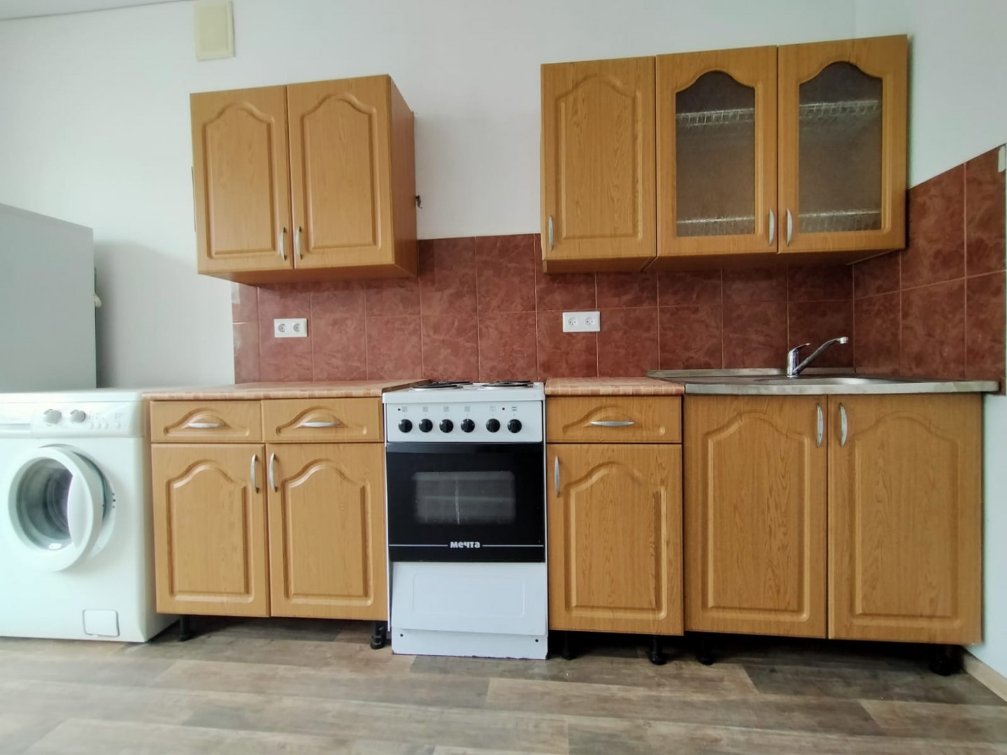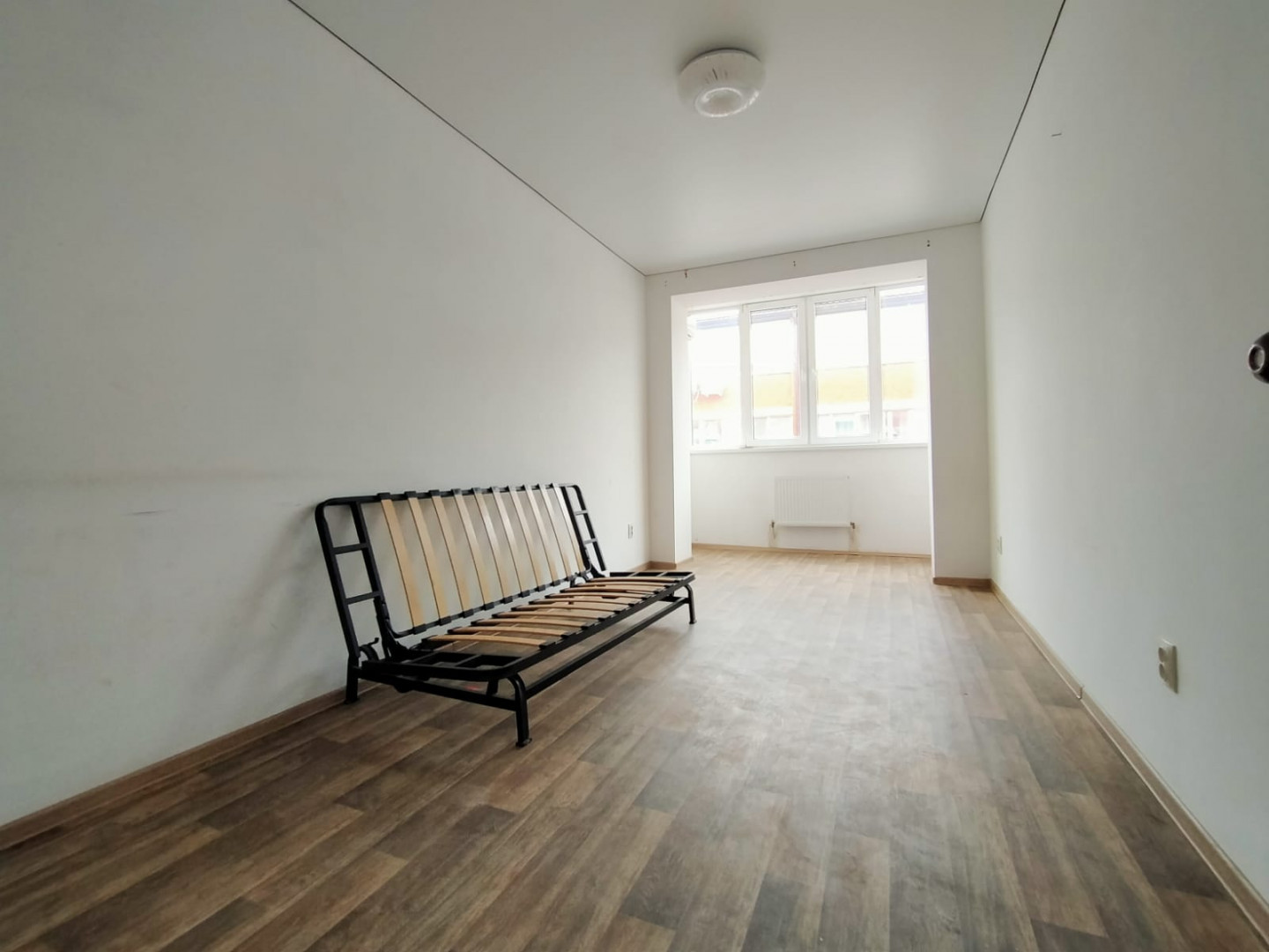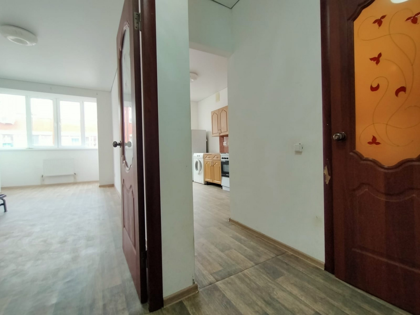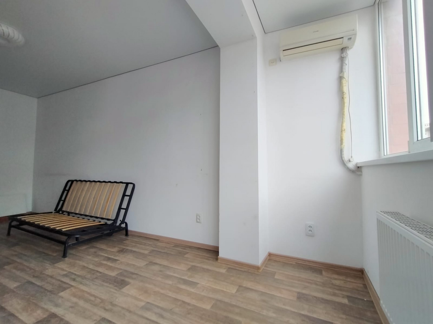 Стены окрашены в светлый цвет. Потолок натяжной по всей квартире. Частично меблированная - остается кухня, холодильник, стиральная машина, водонагреватель, жалюзи на все окна, вся сантехника, раковина, ванная, унитаз, диван кровать.