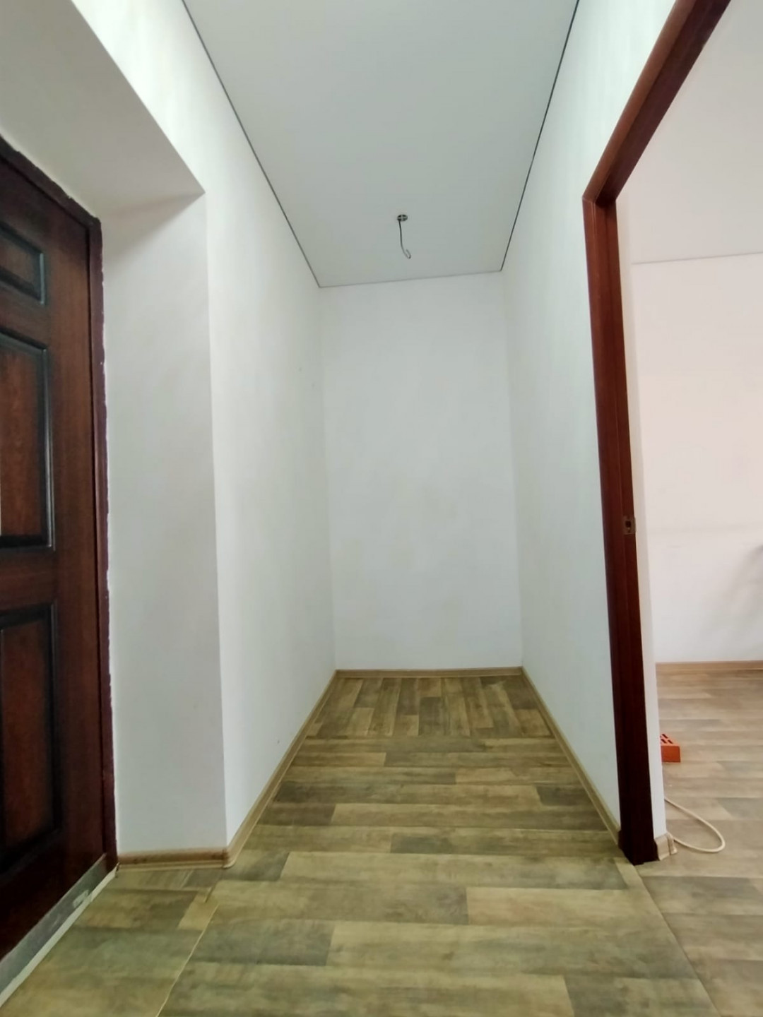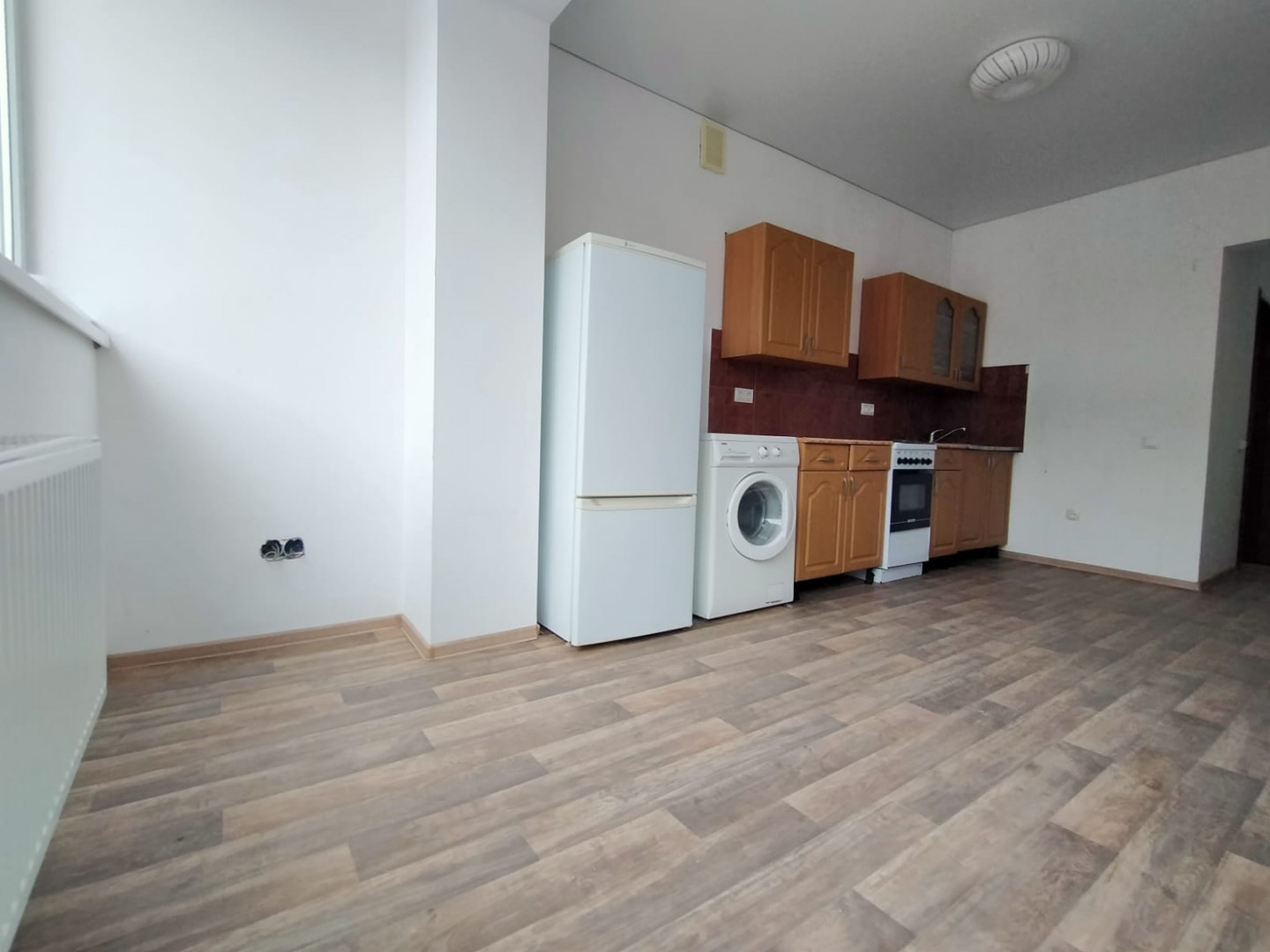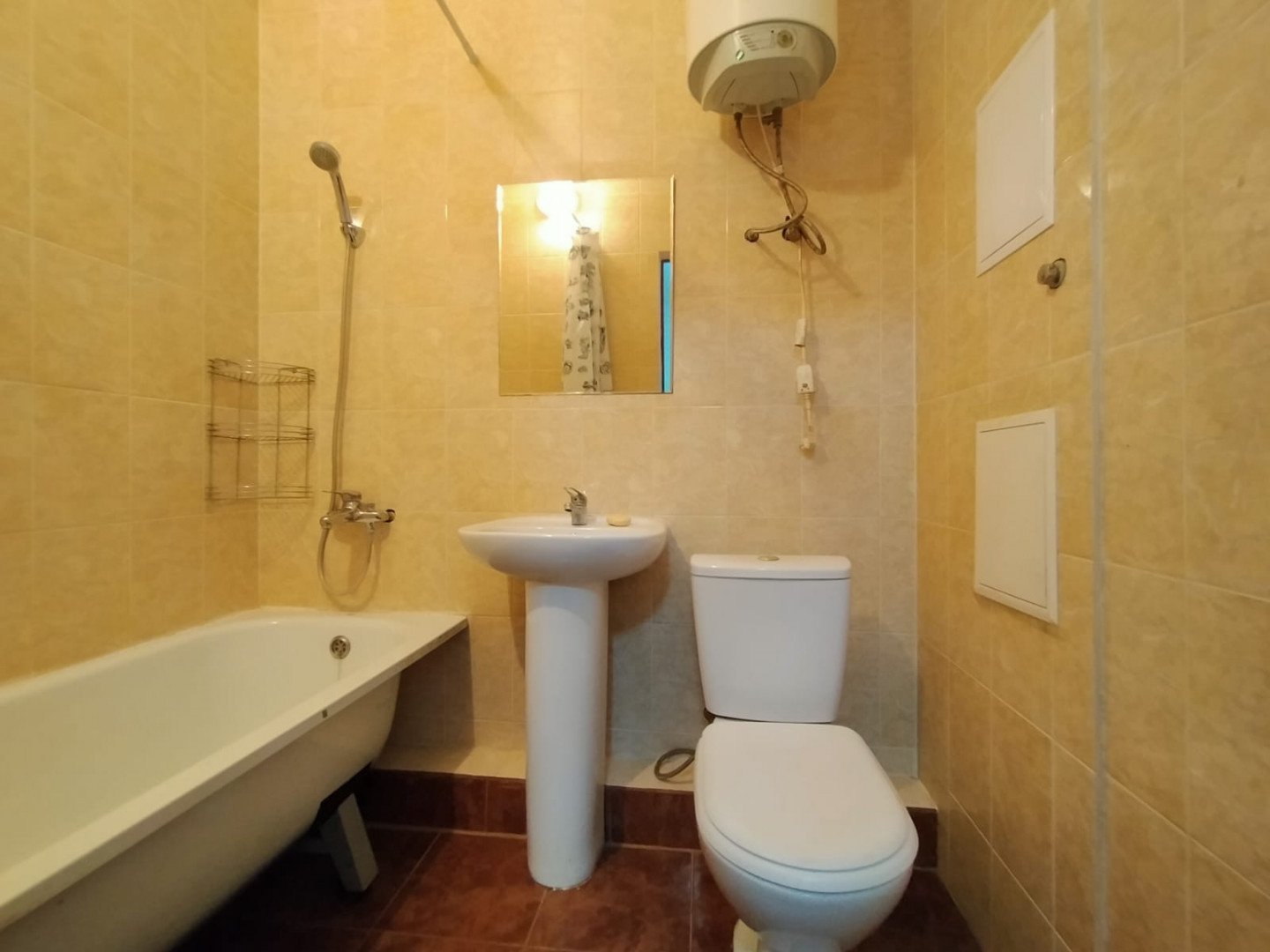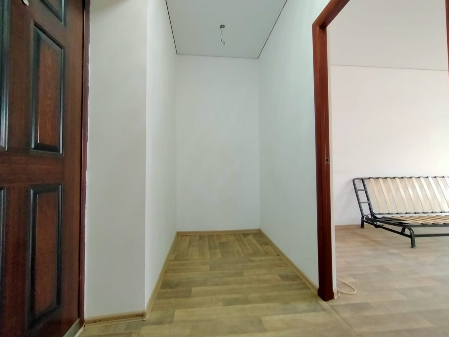 Стены окрашены в светлый цвет. Потолок натяжной по всей квартире. Частично меблированная - остается кухня, холодильник, стиральная машина, водонагреватель, жалюзи на все окна, вся сантехника, раковина, ванная, унитаз, диван кровать.