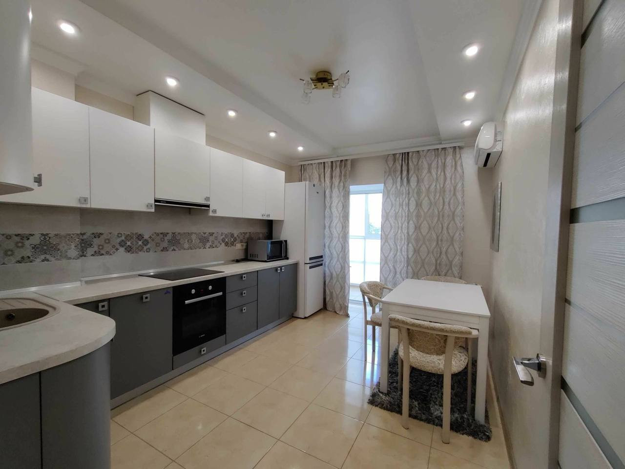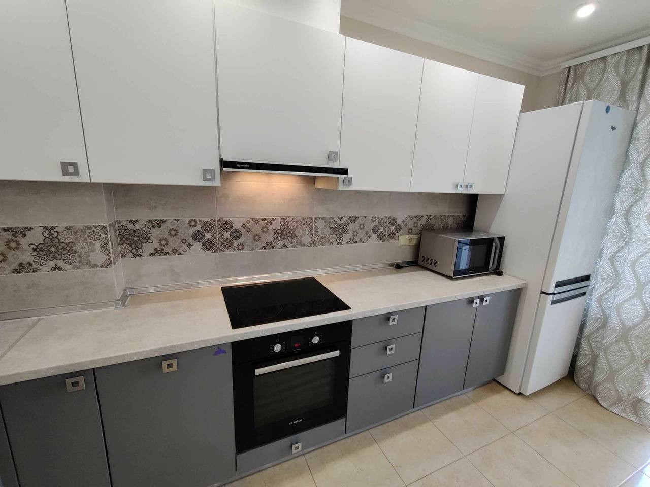 Квартира оснащена современной кухней с высококачественной бытовой техникой, что делает готовку и приготовление пищи легким и приятным процессом.
