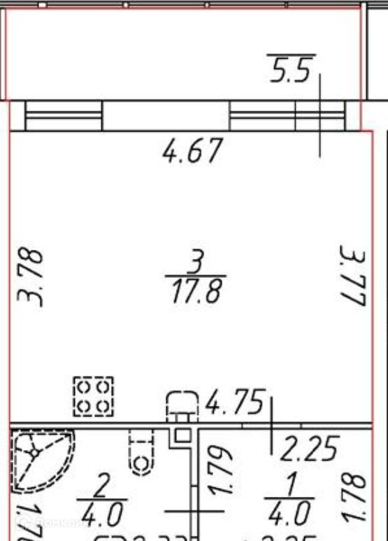 Жилая площадь 17 м2