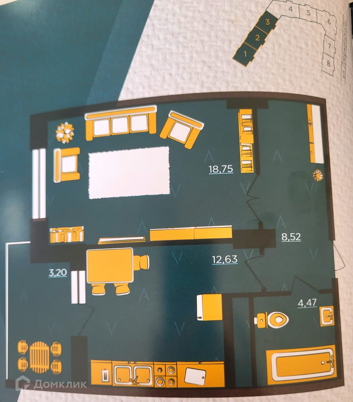 Площадь кухни 12.63 м2