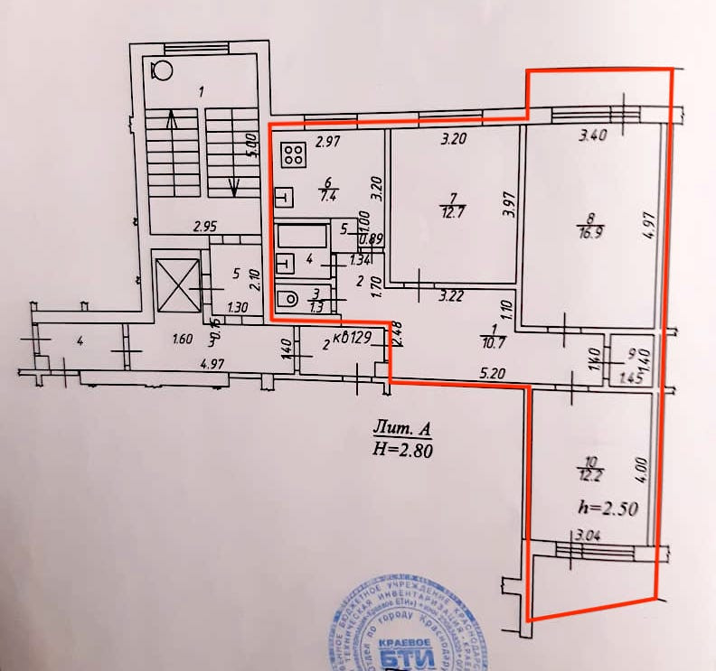 Высота потолков 2.5 м