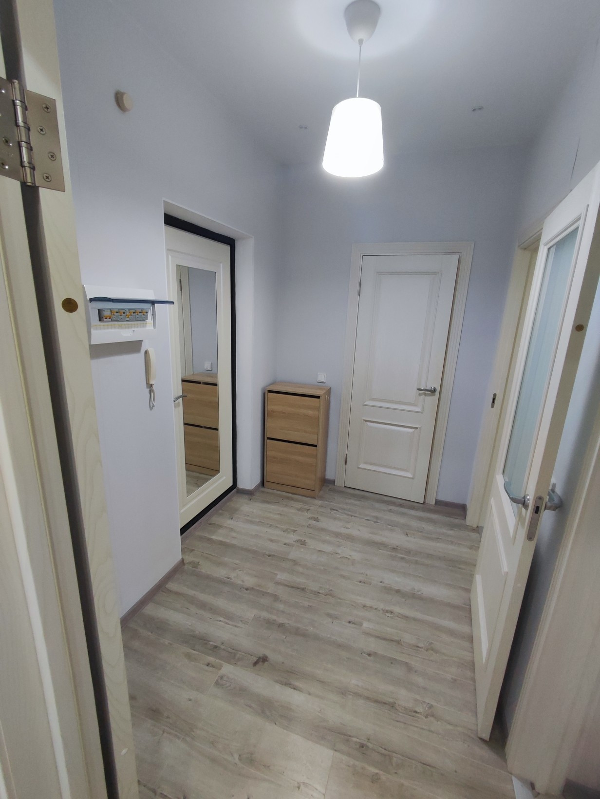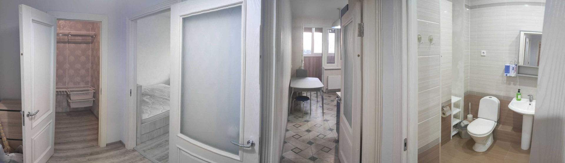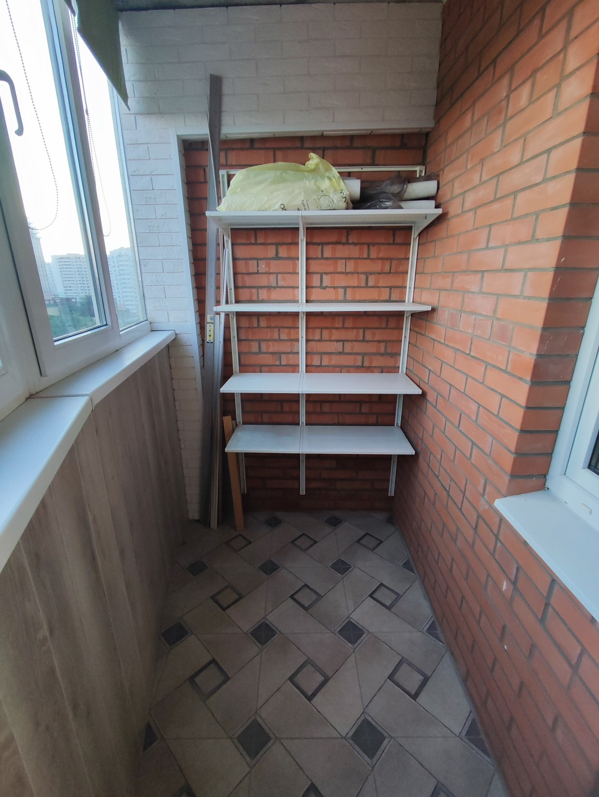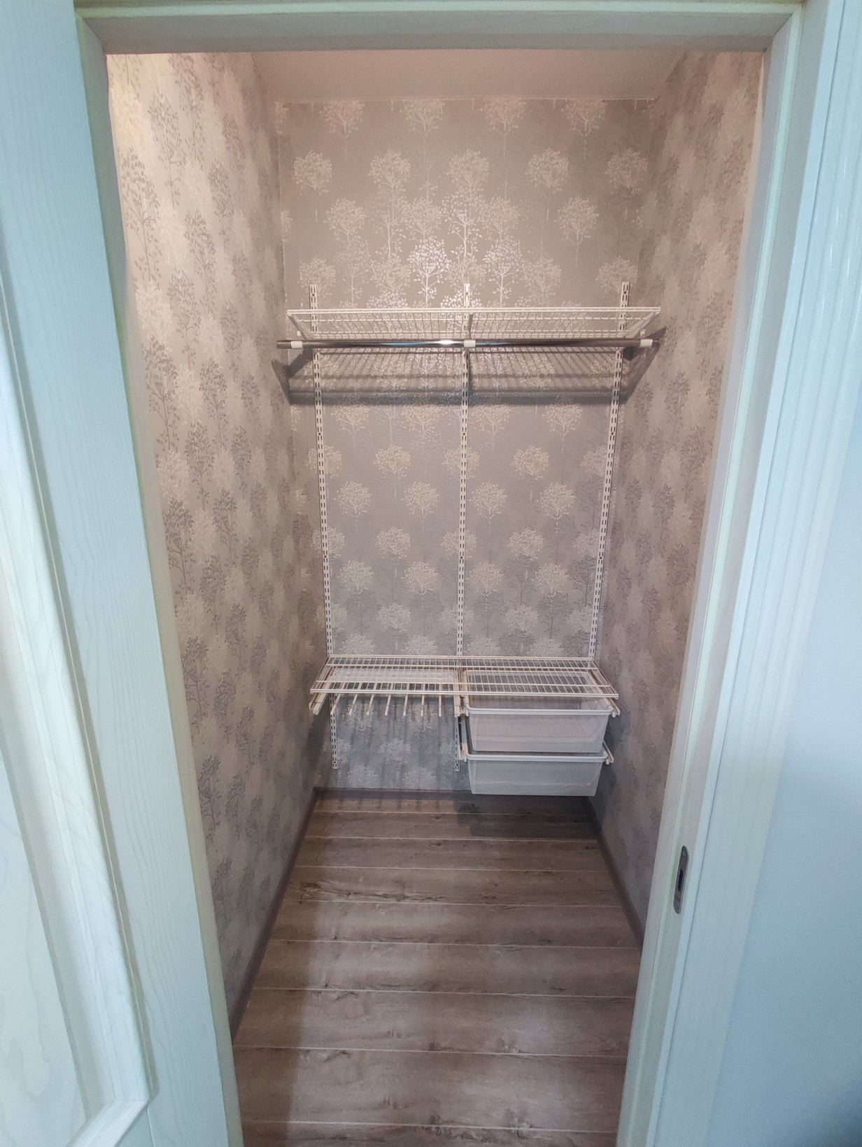 В гардеробной и на балконе имеется навесная система хранения.
