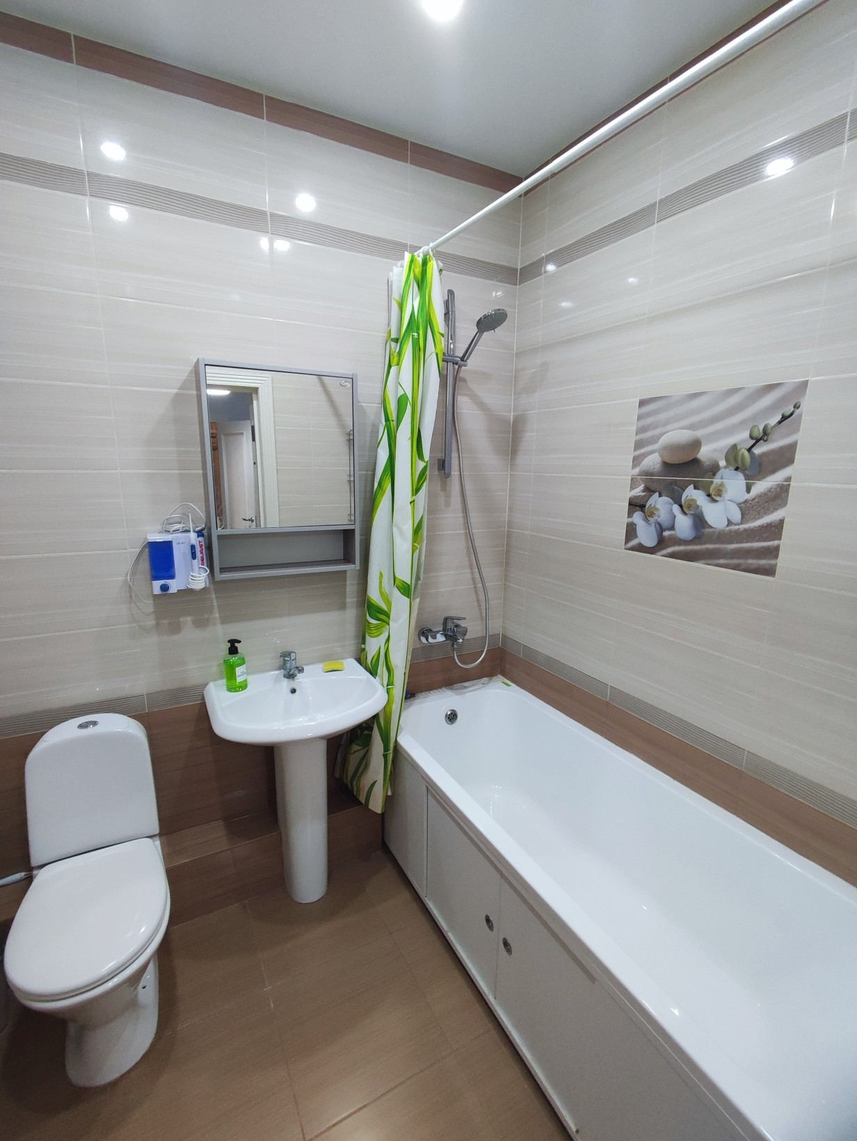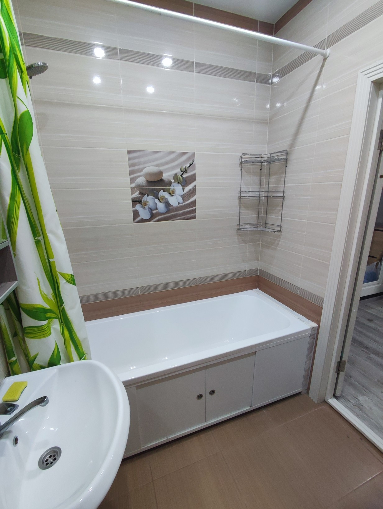 В ванной установлен теплый пол.