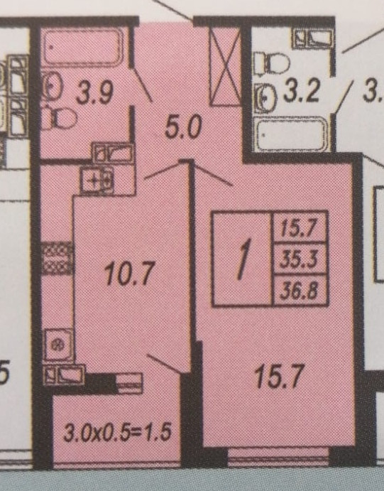 Общая площадь 36.8 м2