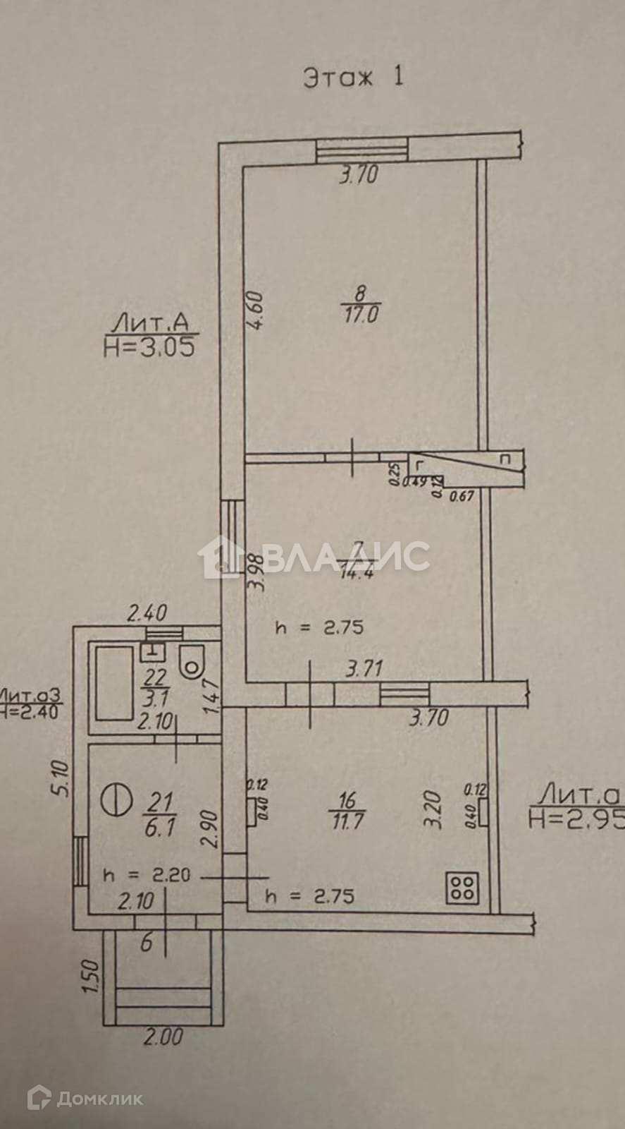 Высота потолков 2.75 м