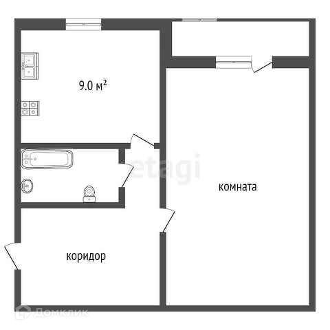 Общая площадь 34.1 м2