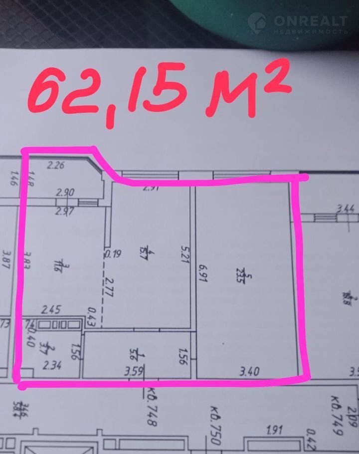 Общая площадь 62.2 м2