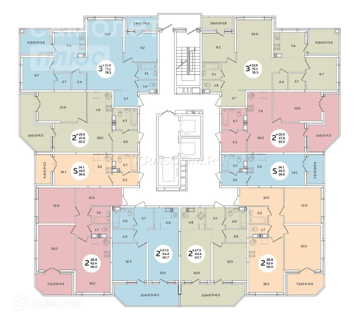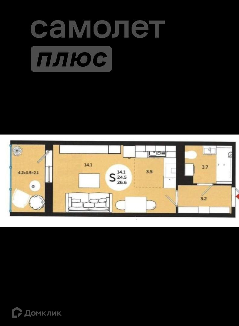 Общая площадь 26.6 м2