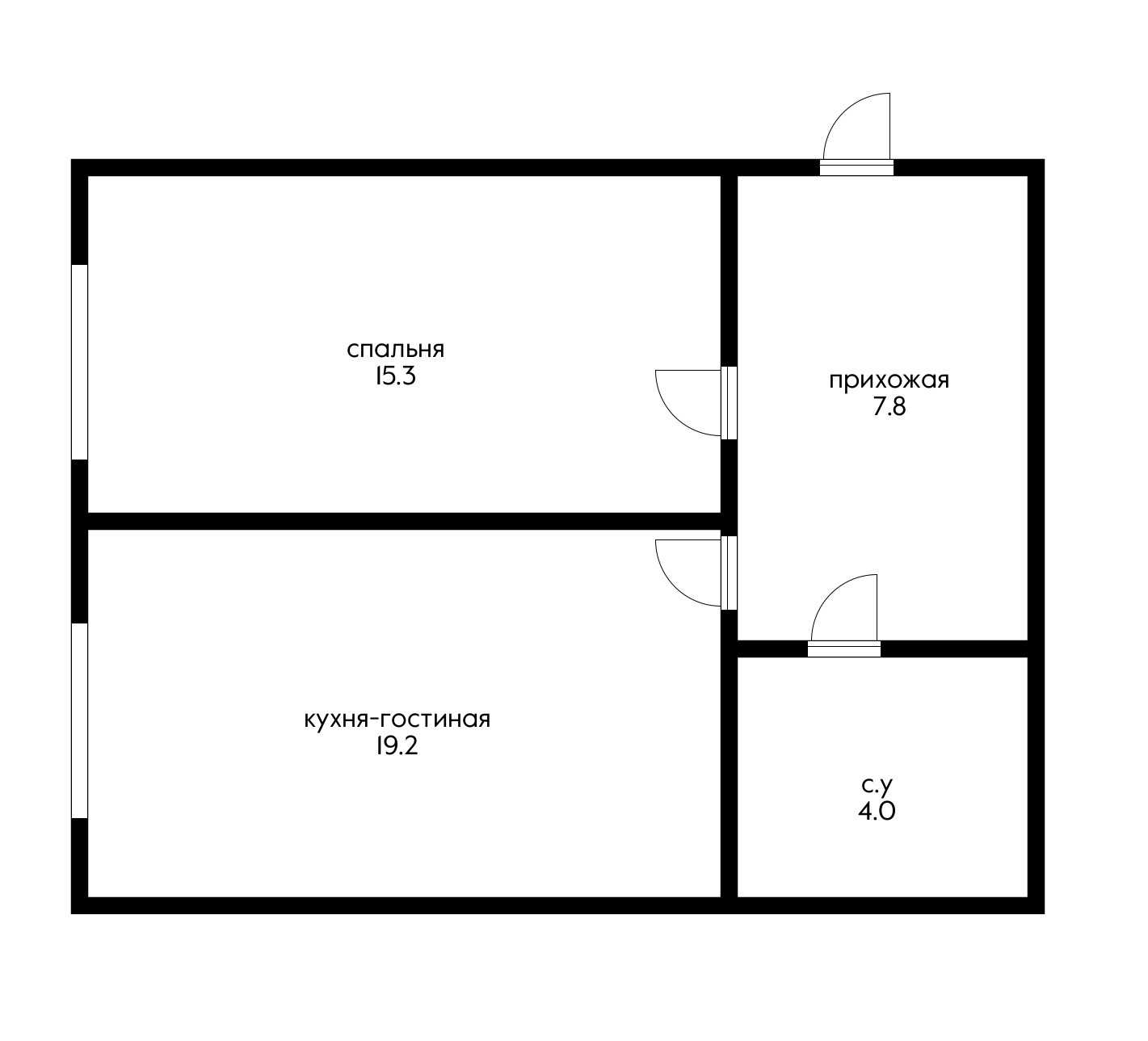 Жилая площадь 15.3 м2