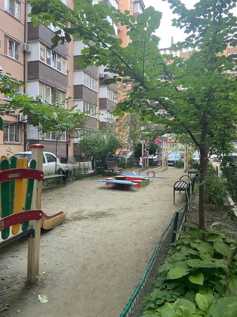 В шаговой доступности муз. школа, школа в 15 мин., гипермаркет Лента, Магнит , Пятерочка в 5 мин., во дворе детская площадка.