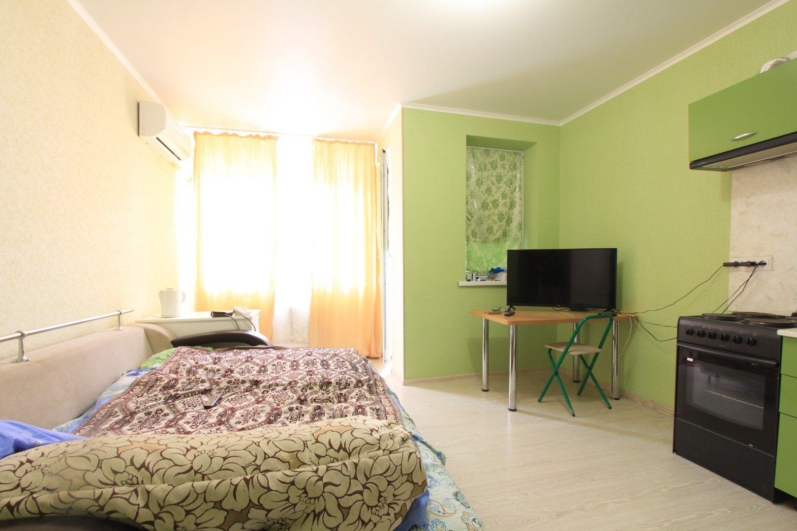 Продается просторная студия в кирпичном доме. Площадь объекта 25м2. Высота потолков 2.7м. Кухня-гостиная 19м2. Современный ремонт. Смежная комната. Имеется ниша для гардероба. Мебель по соглашению. Теплая квартира. Окна во двор. Установлен кондиционер