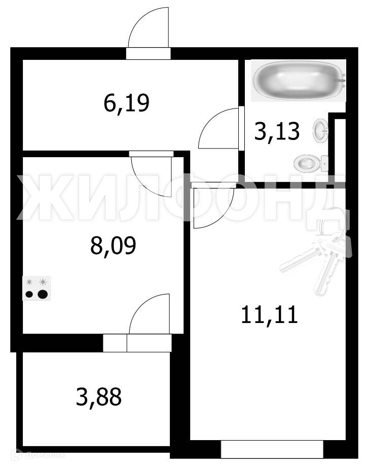 Жилая площадь 11.11 м2