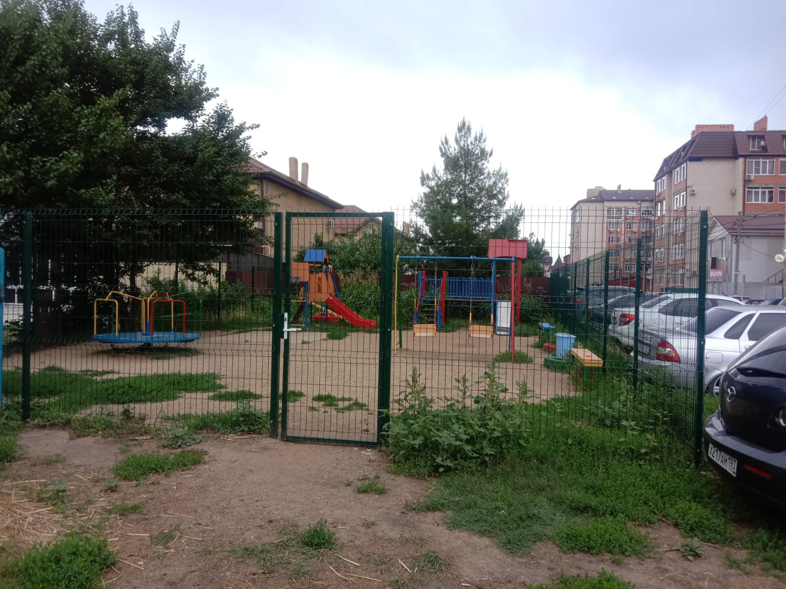Детская площадка огорожена.