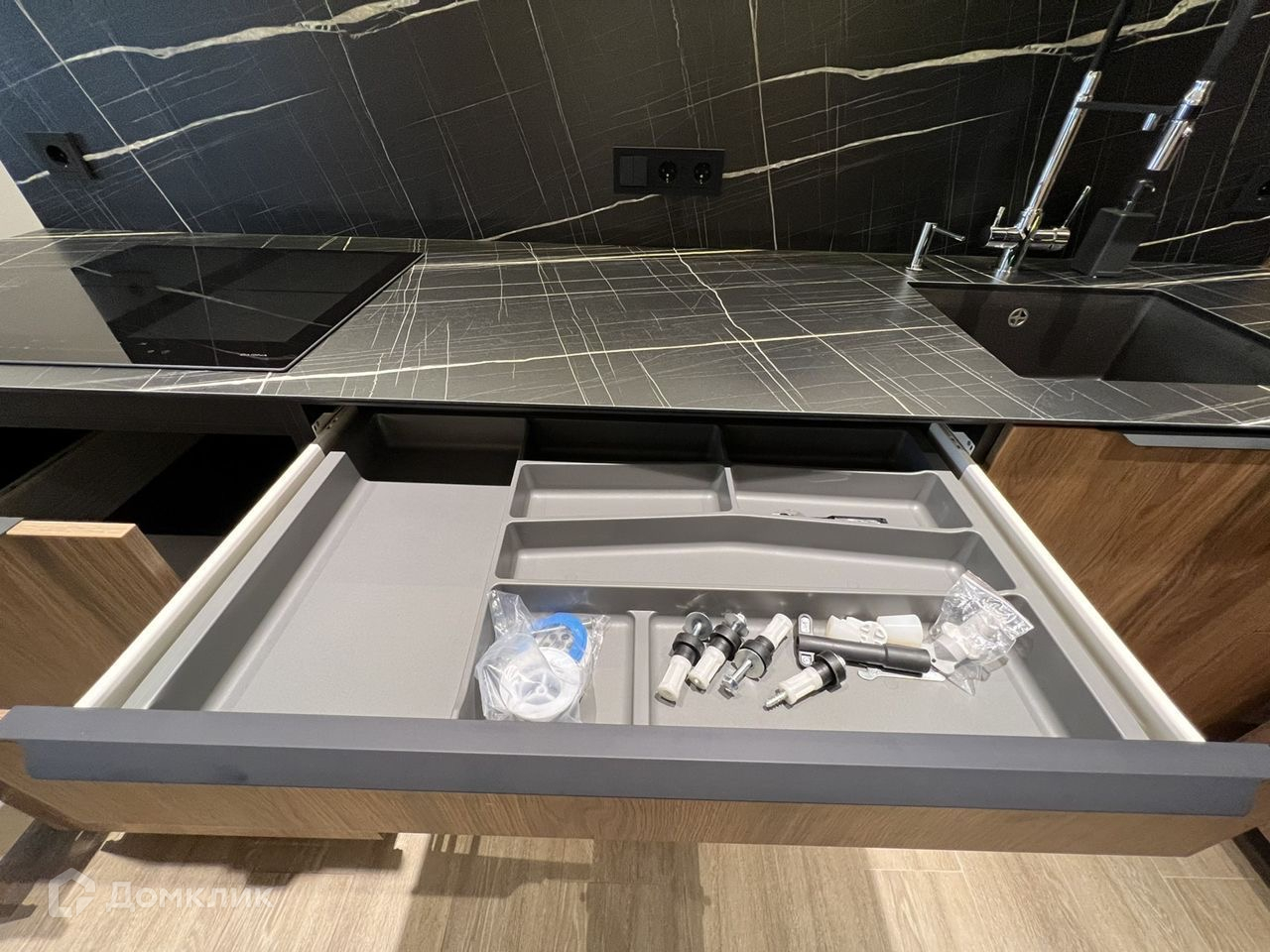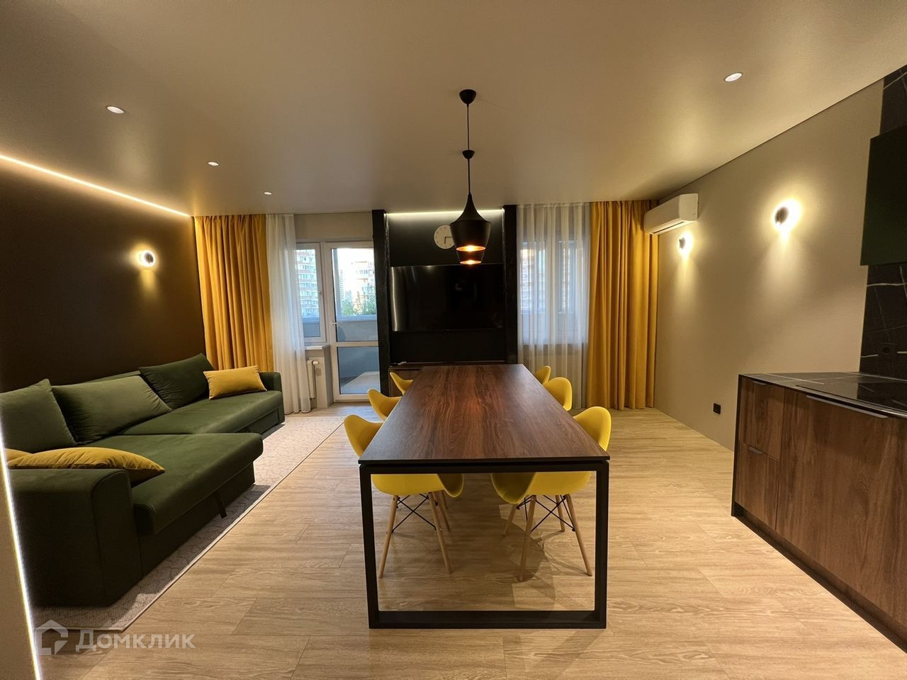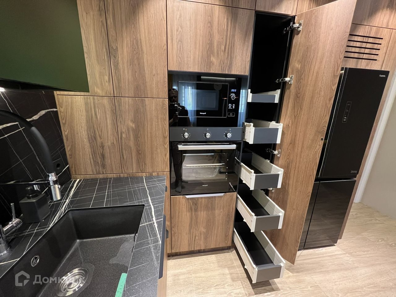 Во всех комнатах кондиционеры. Кухня продумана до мелочей и сделана на заказ, кухонная фурнитура Blum. На кухне установлена вся бытовая техника: микроволновка, духовой шкаф,плита индукционная, вытяжка, посудомойка, холодильник, телевизор 65 дюймов. Стиральная машина, дополнительно установлен проточный водонагреватель, и фильтра жесткой очистки воды.