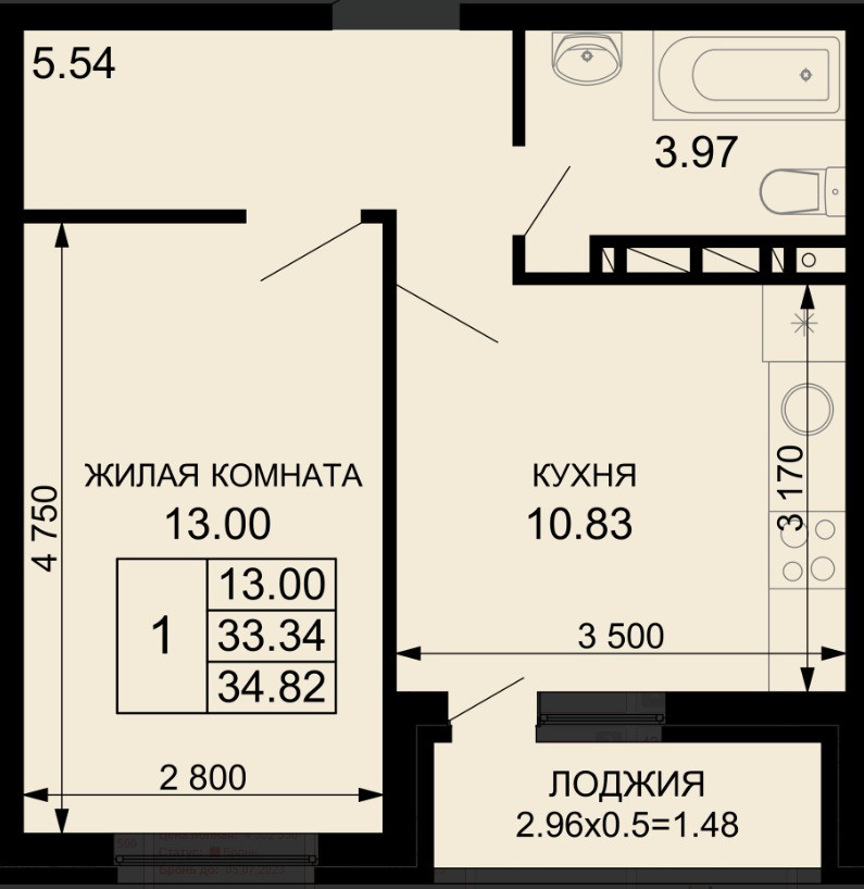 Общая площадь 35 м2