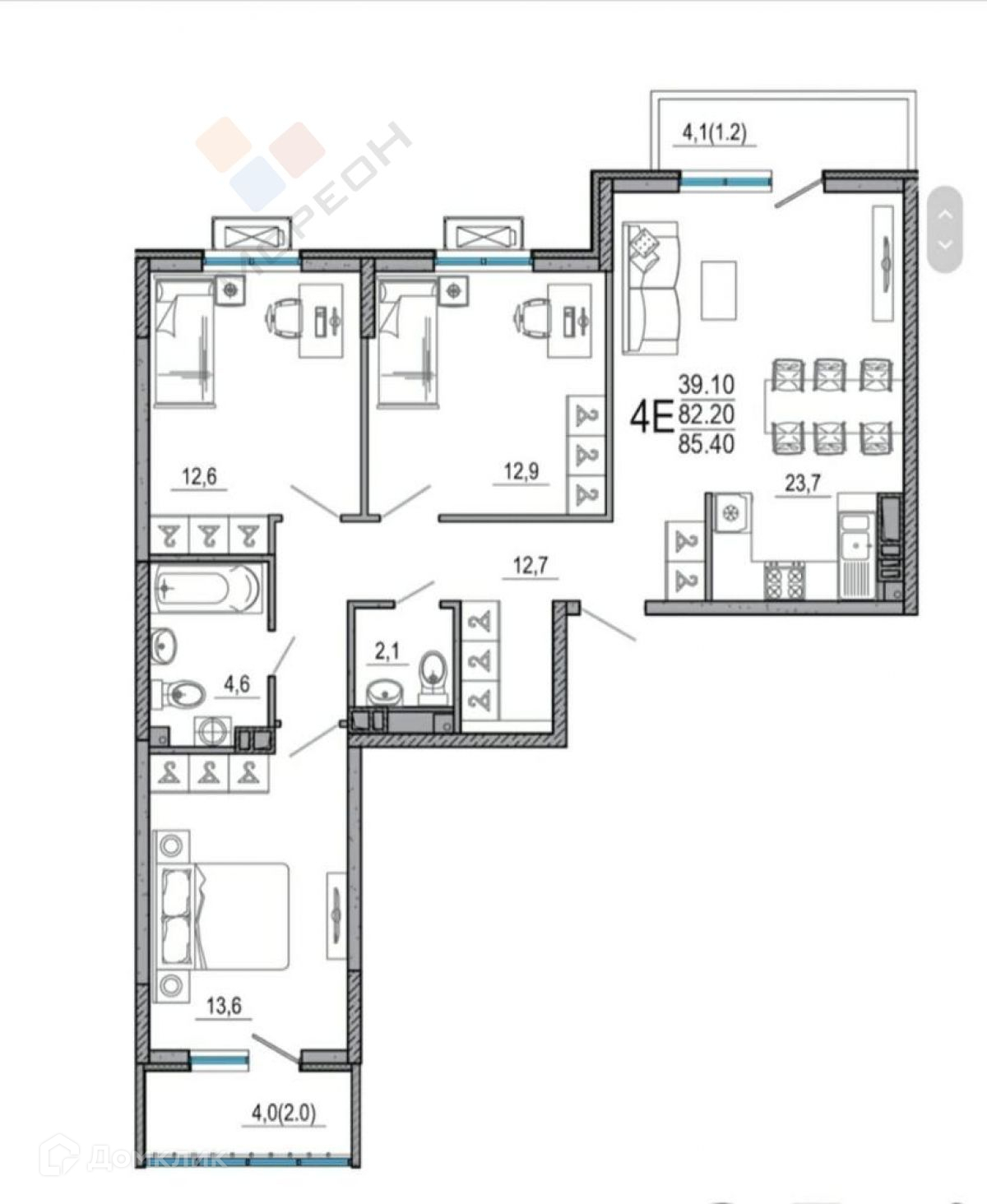 Общая площадь 92.6 м2